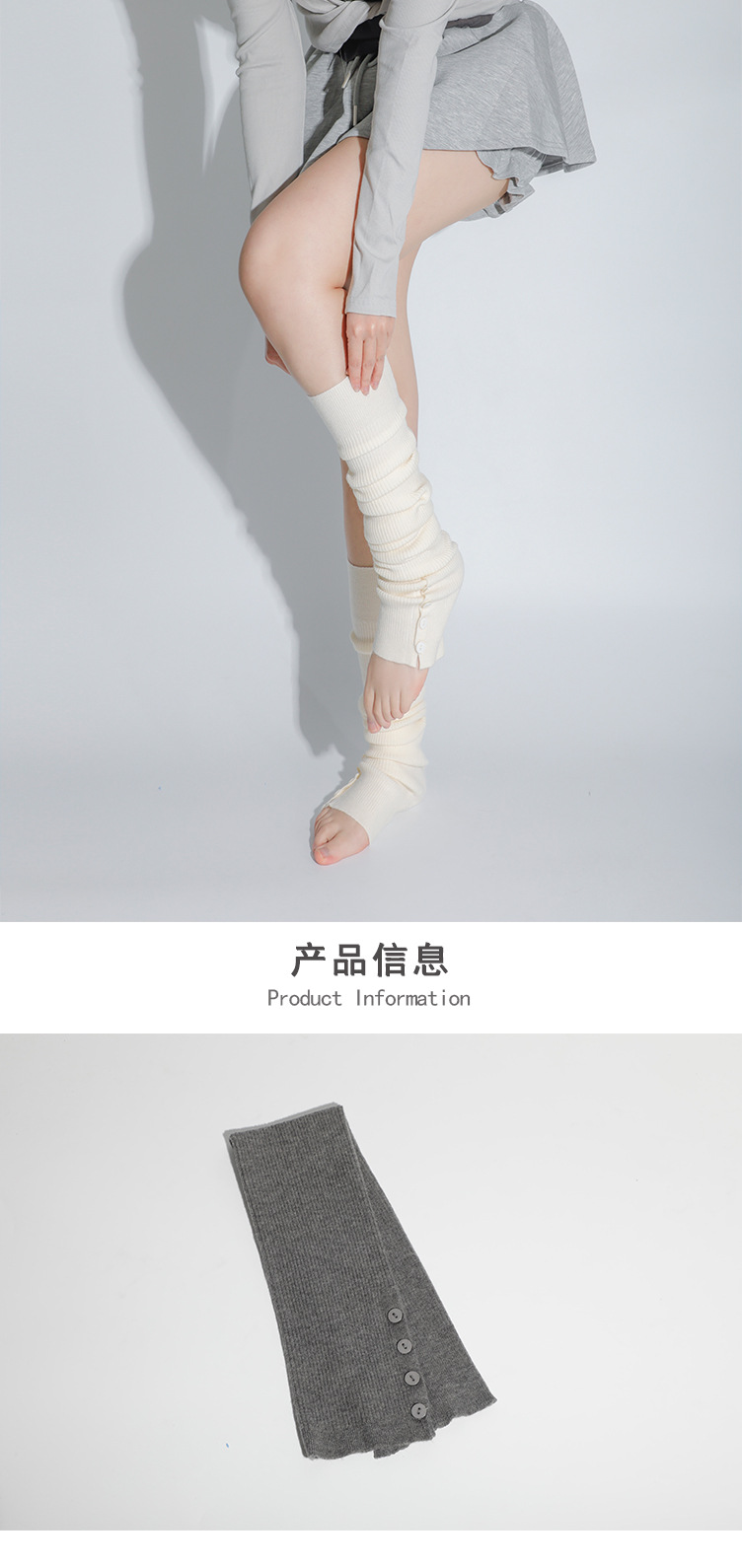 단색 신축성 롱 니트 양말 미우 발레 스타일 무릎 보호대 따뜻한 다리 커버 버튼 슬릿 디자인 레이어드 양말