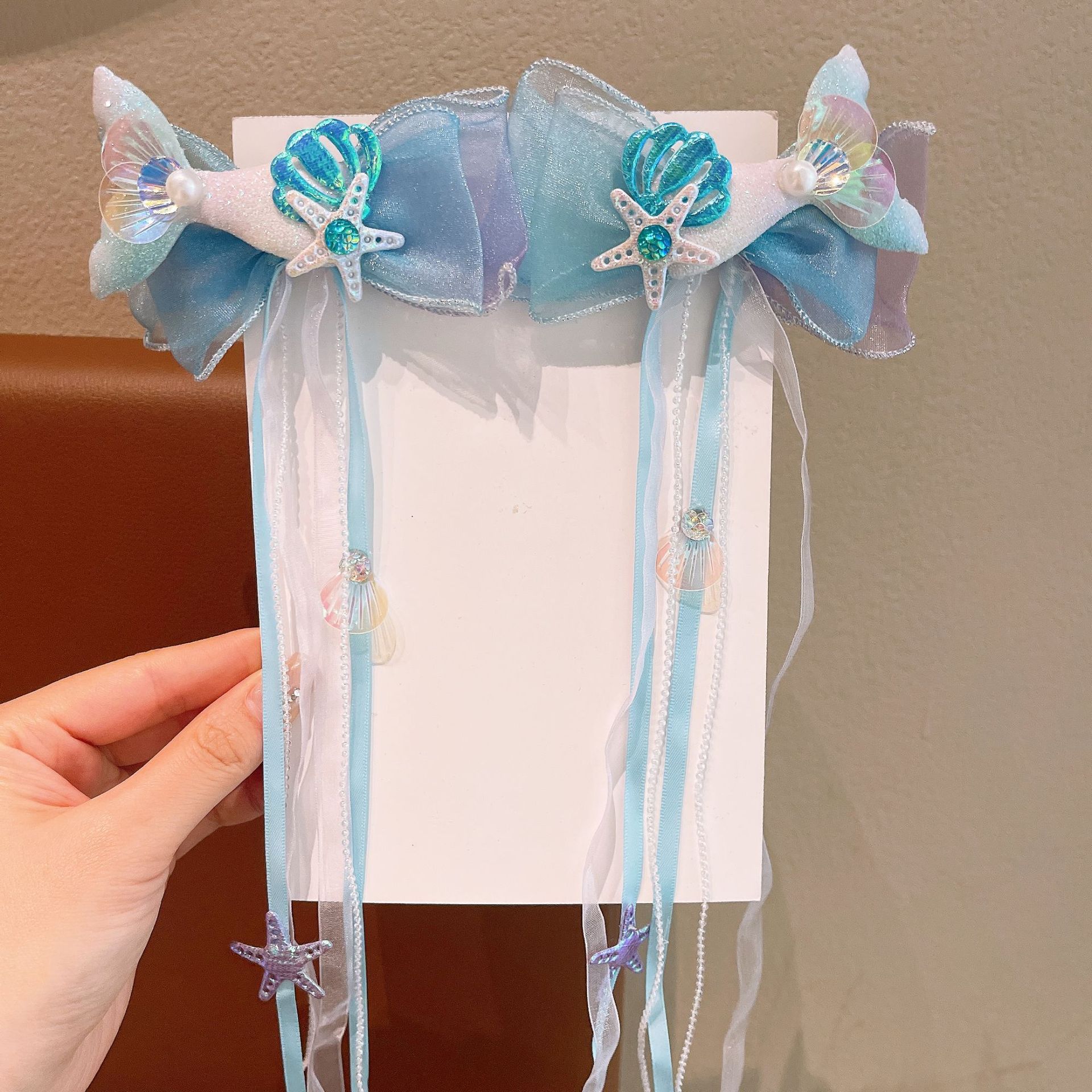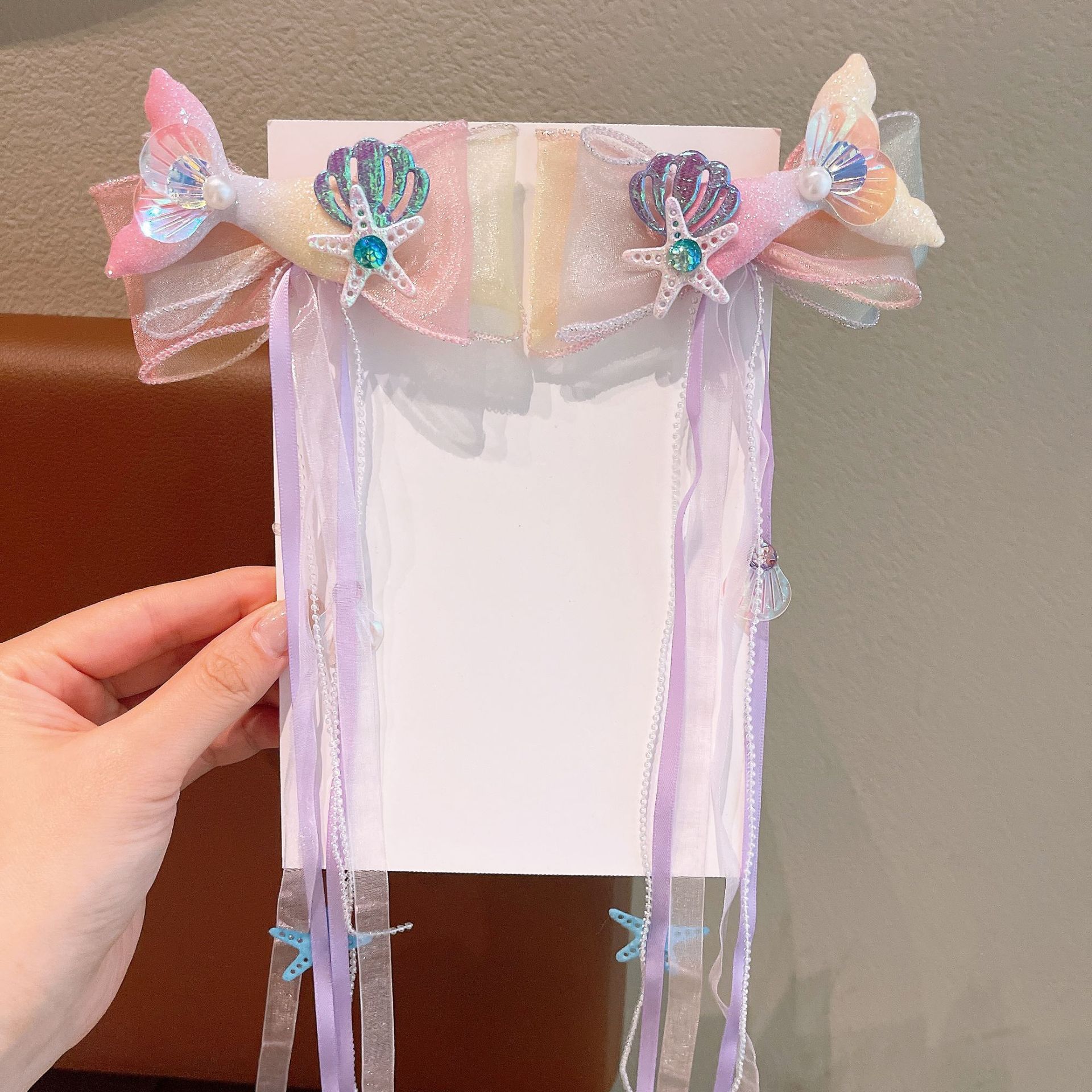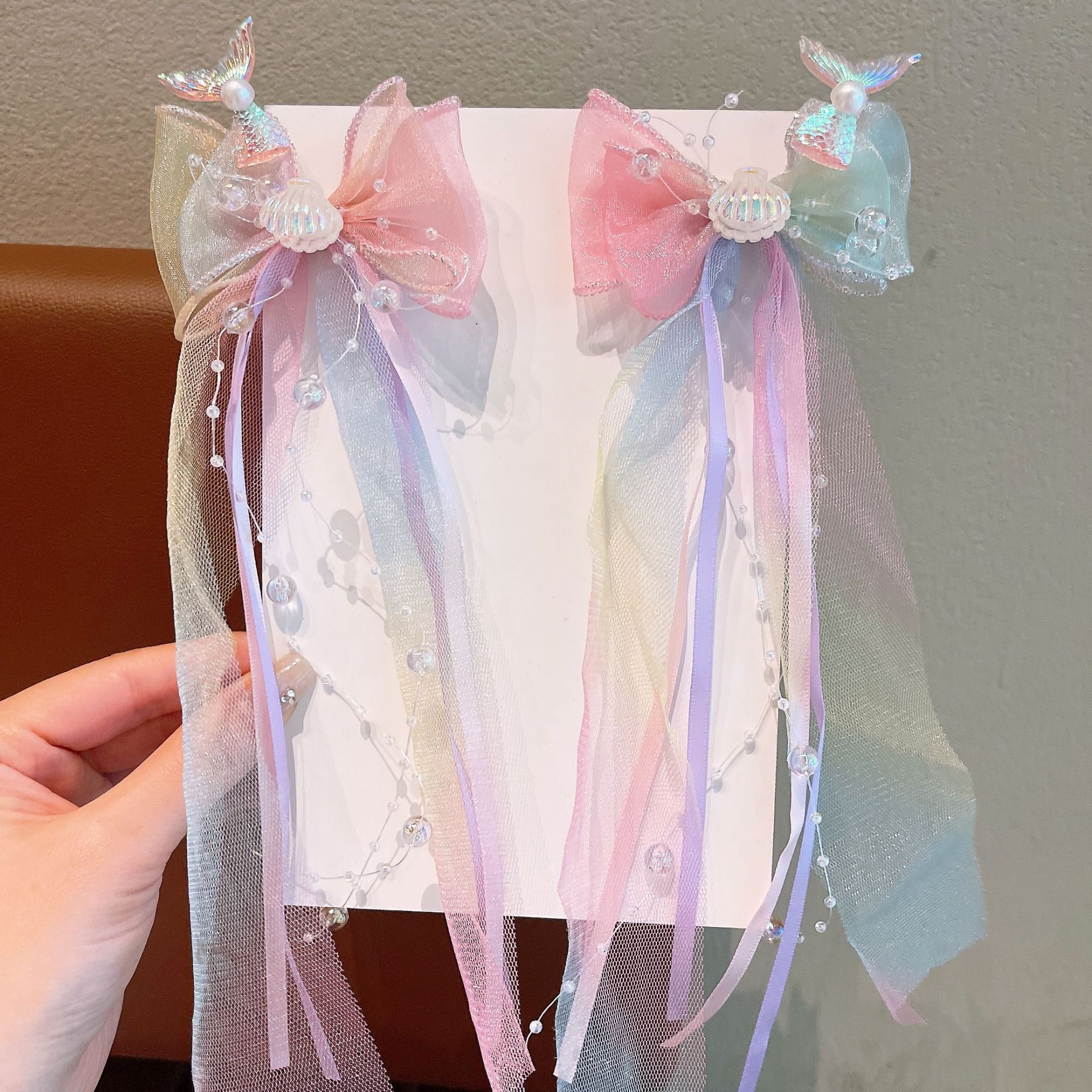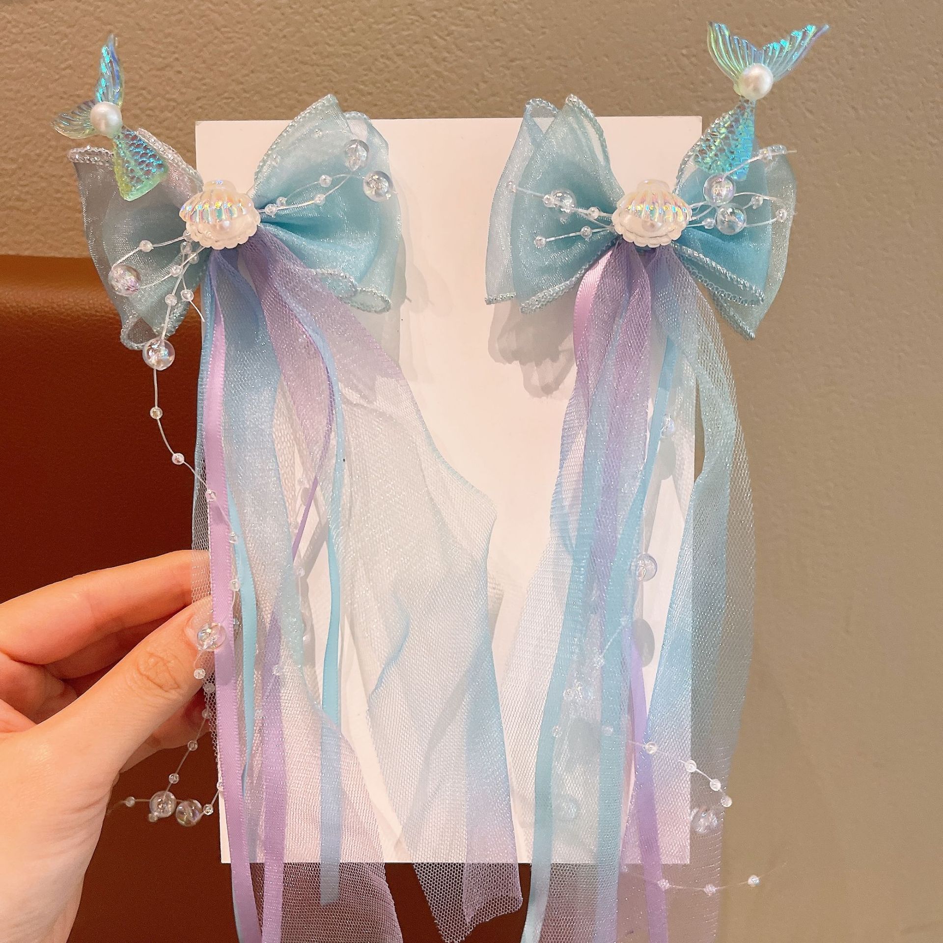 한국 어린이 시원한 여름 입체 진주 스팽글 머리핀 소녀 인어 부모 자식 물고기 꼬리 쌍 클립