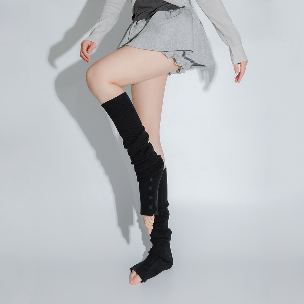 미우 윈드웨어 버튼 무릎 길이 쌓인 양말 커버 미끄럼 방지 다리 패드 필라테스 요가 다리 커버
