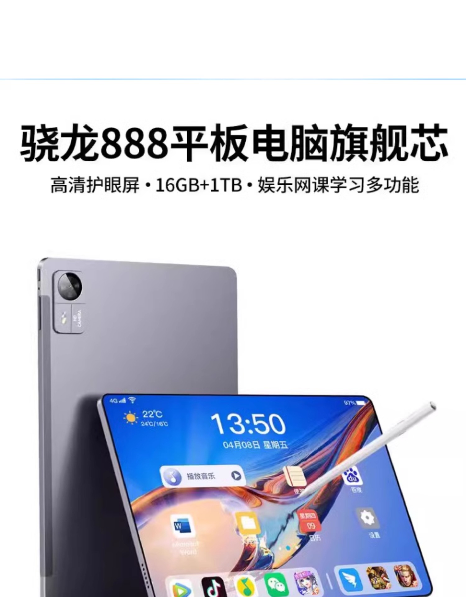 • 1TB-공식 표준- 13inch★매우 선명한 눈 보호 전체 화면 [4G/5G 전체 네트워크 + Wi-Fi + 카드 삽입 가능]