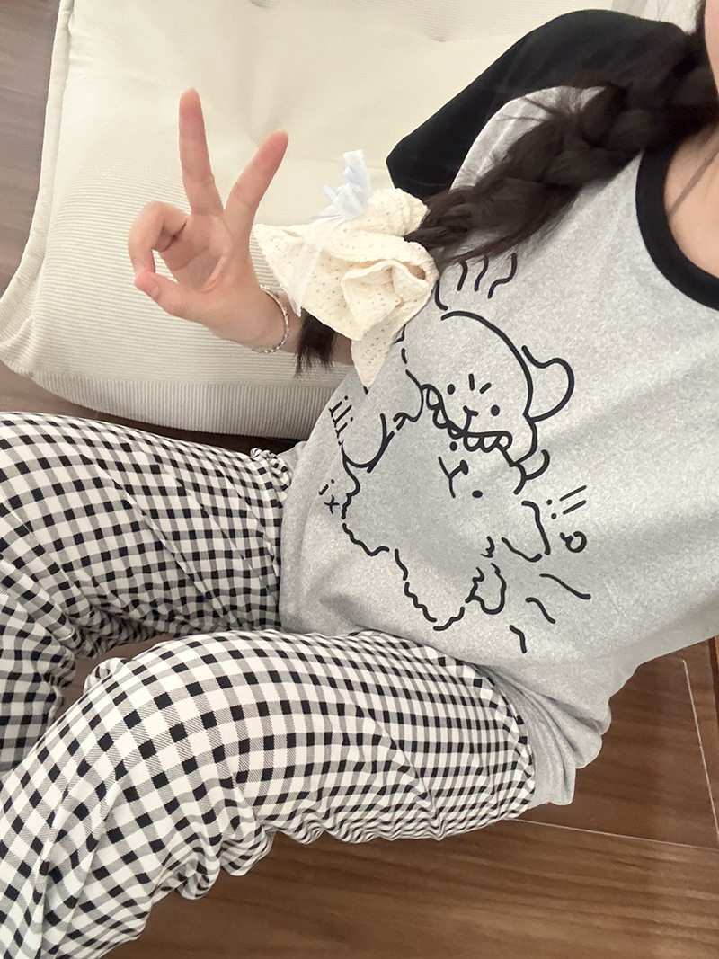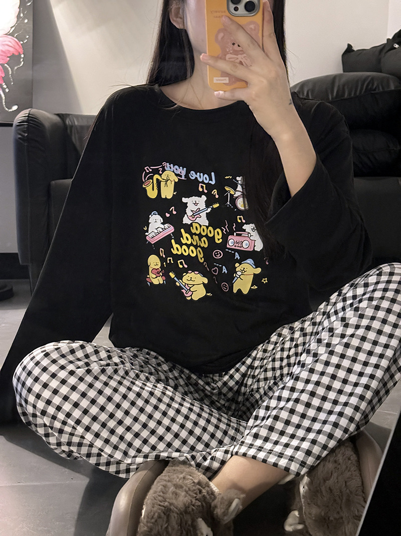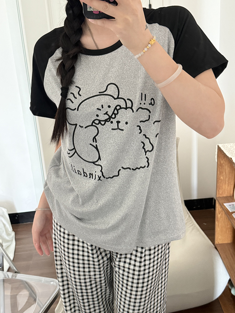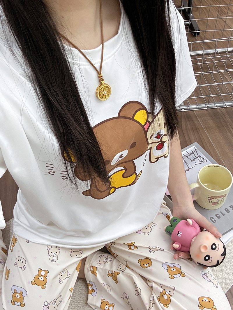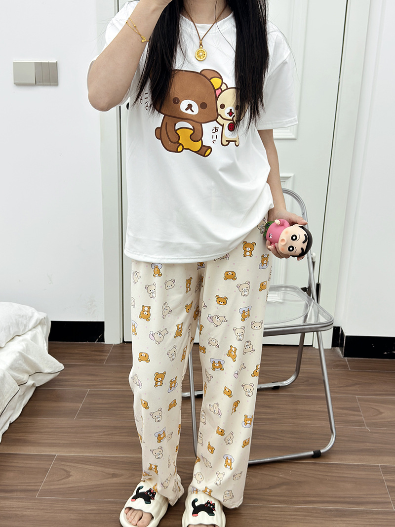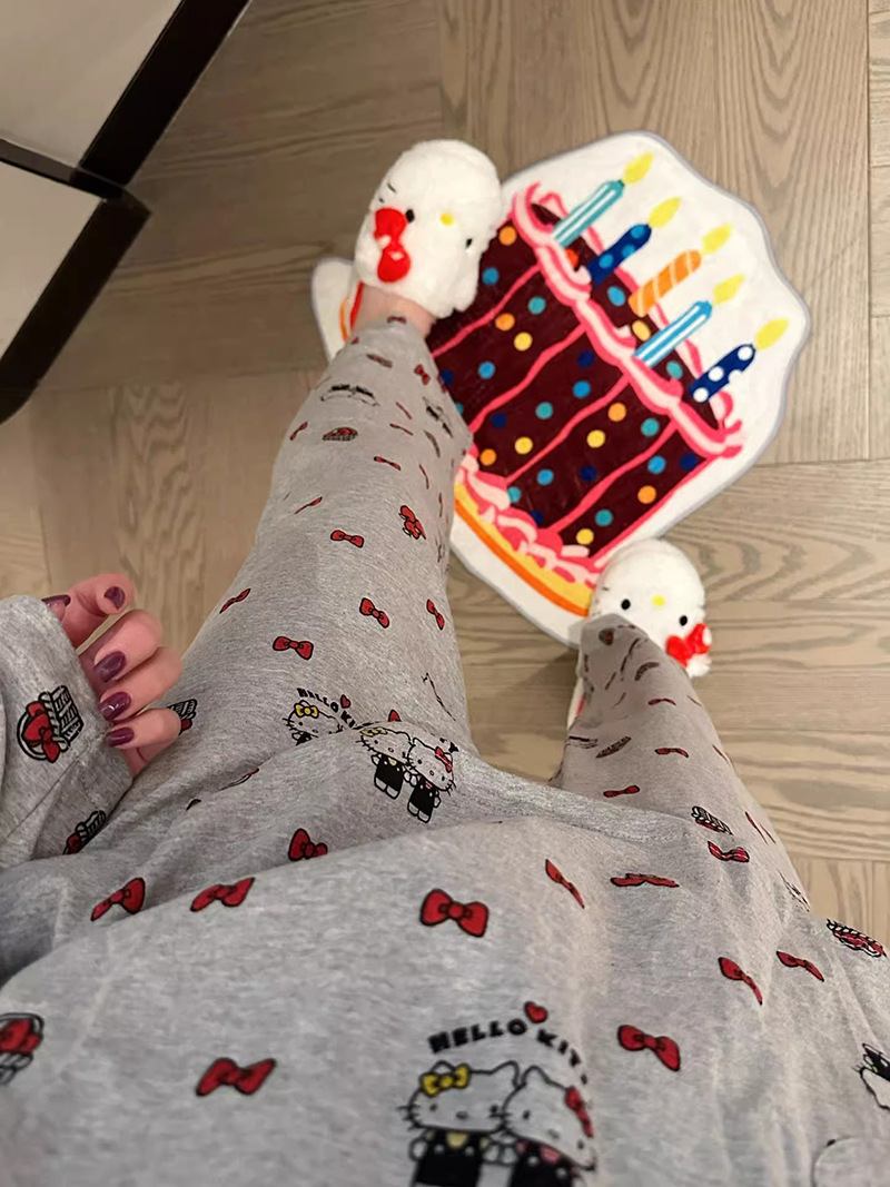 Ins Girls 귀여운 헬로 키티 짧은 소매 파자마 여성의 봄과 여름 2025 새로운 티셔츠 바지 홈 의류 세트