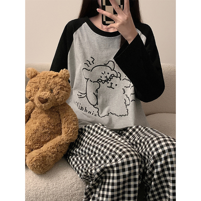 Ins Girls 귀여운 헬로 키티 짧은 소매 파자마 여성의 봄과 여름 2025 새로운 티셔츠 바지 홈 의류 세트스토어 가기