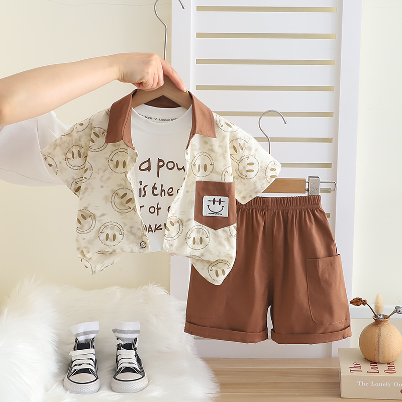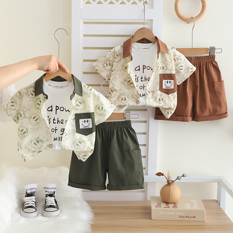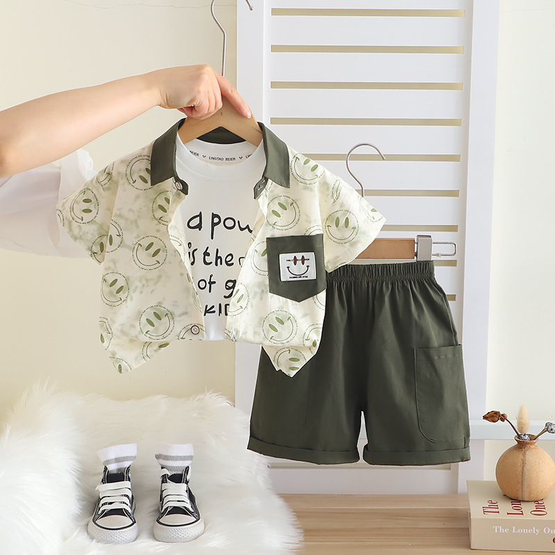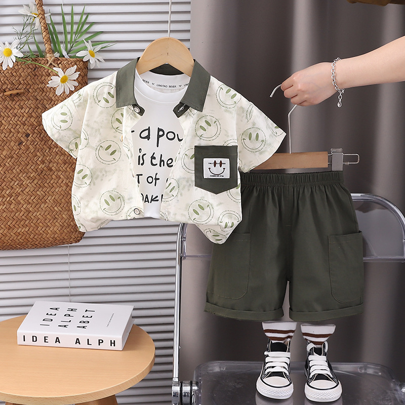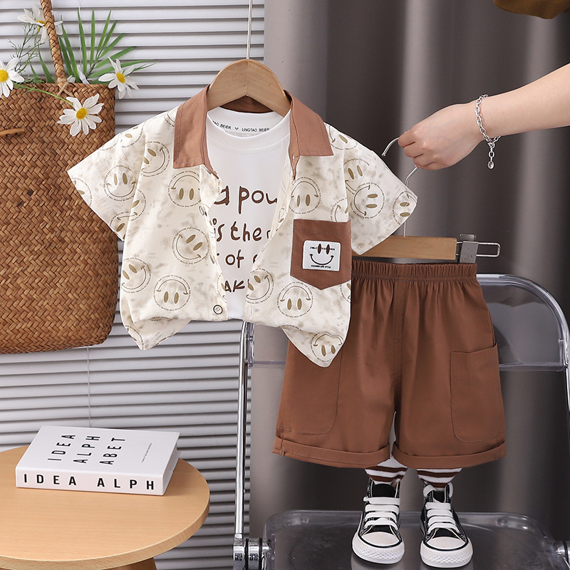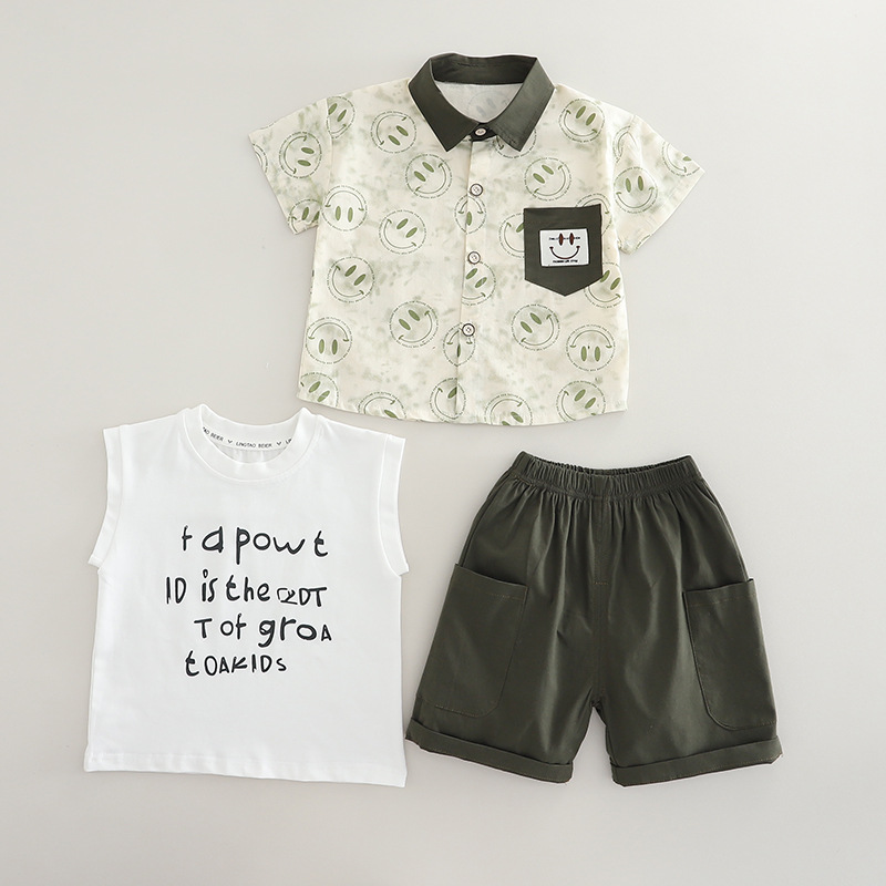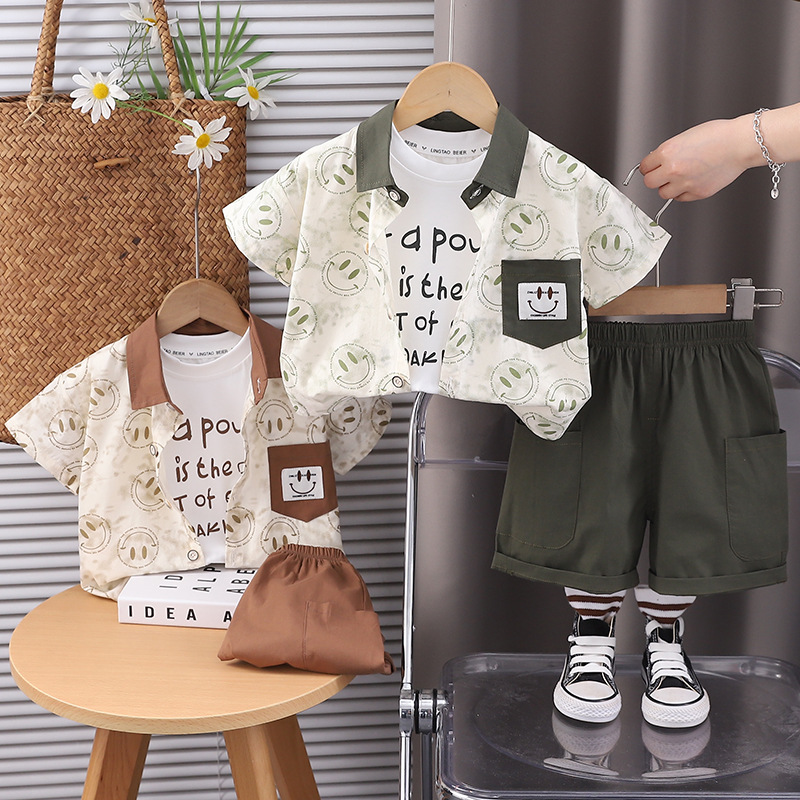 유행 카디건 반소매 3 피스 세트를 세트 남학생과 아기의 여름 옷을위한 소년의 여름 새 스타일 셔츠스토어 가기