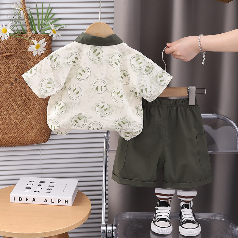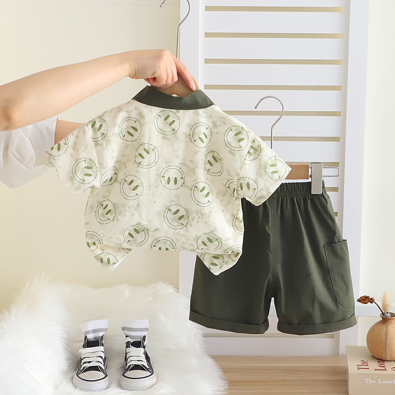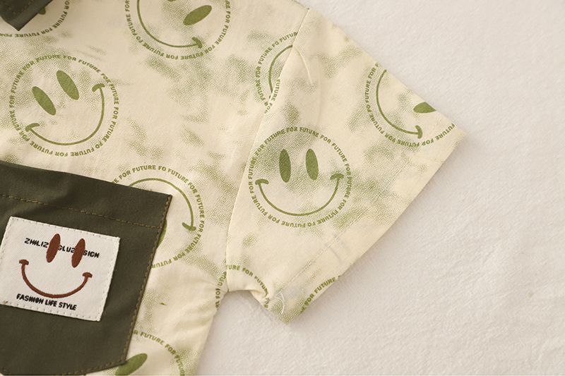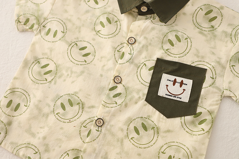 • 그린 SJ8350 올오버 프린트 스마일리 셔츠 3종세트