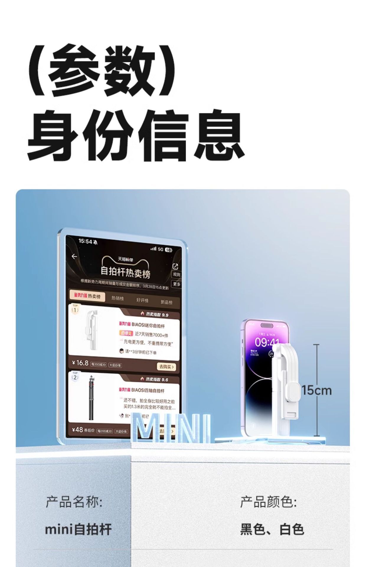 • 7OCM 화이트 [뷰티모델] 항공합금이 안정적이고 흔들리지 않음 ★ 휴대용 O 부담 ★ 휴대용 셀카