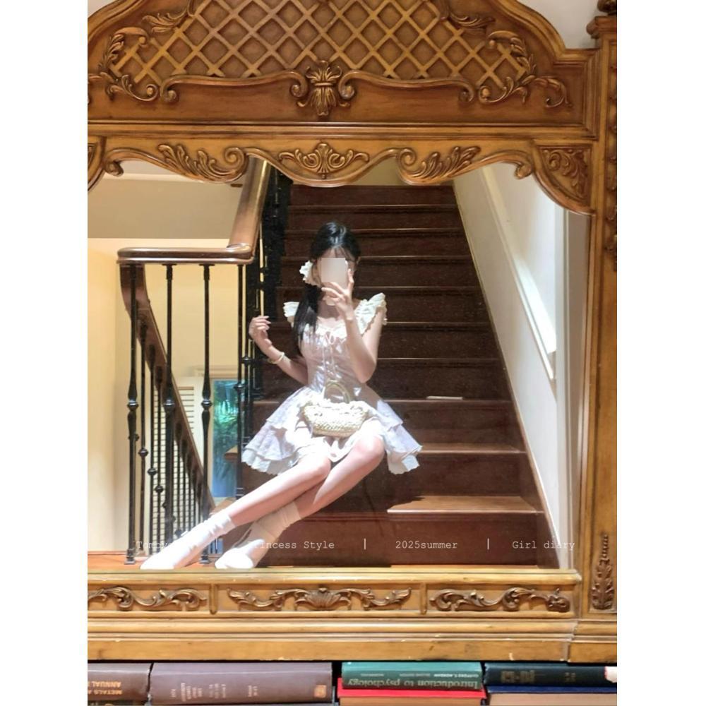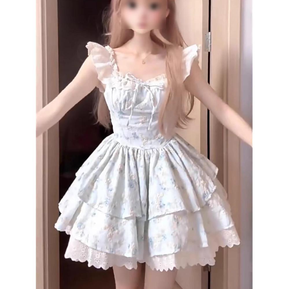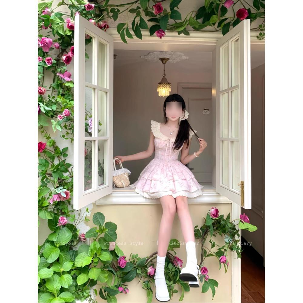 원래 공주 케이크 치마 타이트 허리 슬리밍 달콤한 플라잉 부드러운 꽃 우아한 타이트 허리 원피스 여성스토어 가기