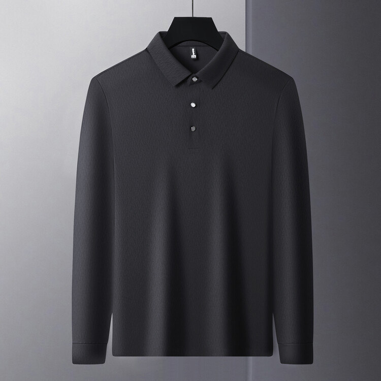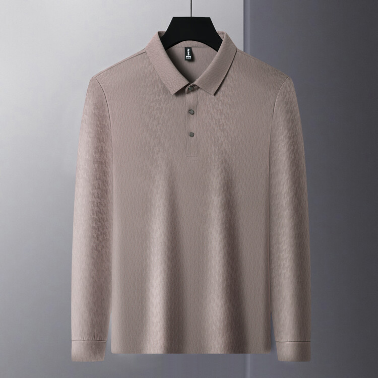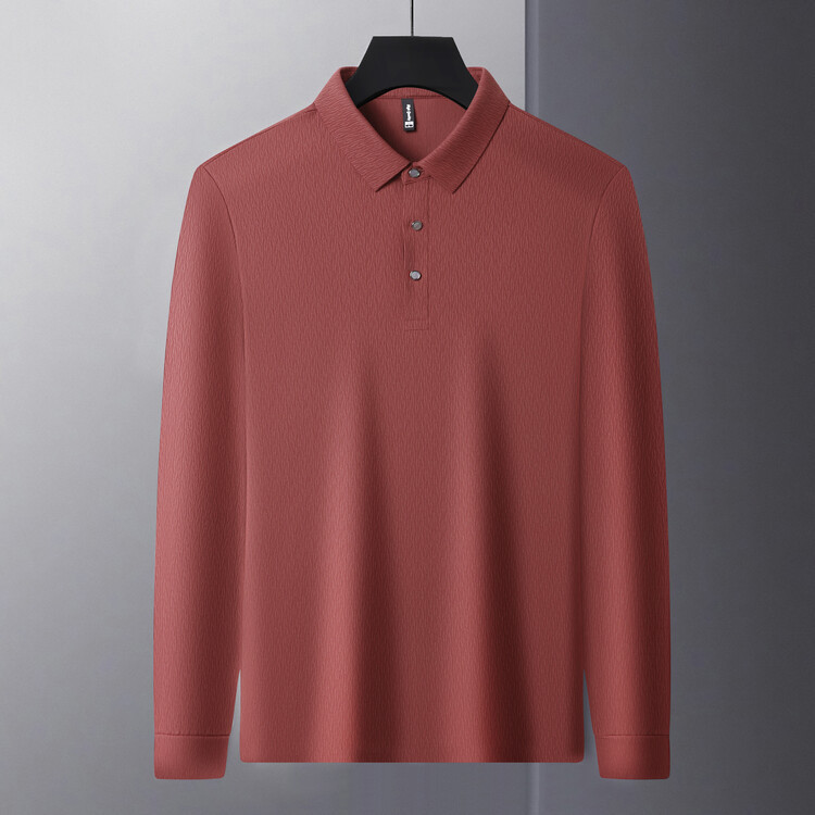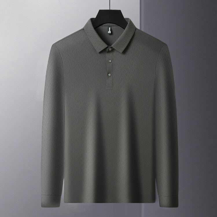 가벼운 고급 고급 중년 남성 폴로 다크 패턴 양각 아이스 실크 짧은 소매 셔츠 하이 엔드 봄과 가을 소매 솔리드 컬러 헤어