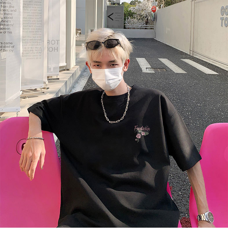 아메리칸 스타일 하이 스트리트 로즈 프린트 헤비 코튼 반팔 티셔츠 남성 여름 오버 사이즈 레트로 트렌디 브랜드 티셔츠스토어 가기