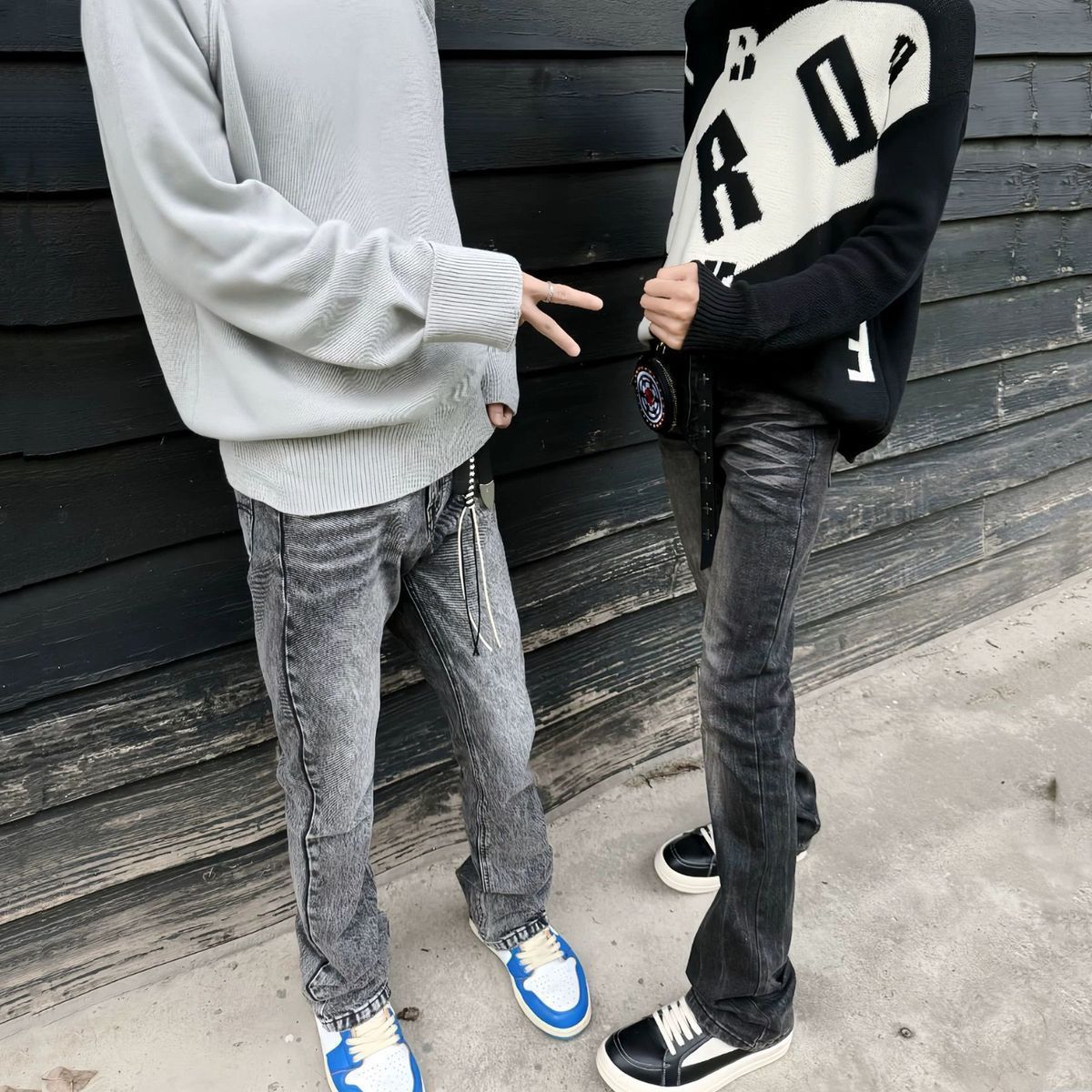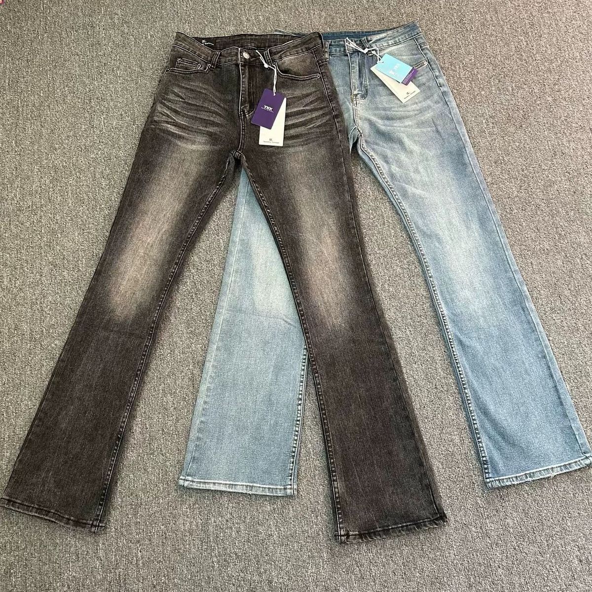 DC+ 아메리칸 하이 스트리트 클린핏 헤비급 vtg 워싱 라이트 블루 517 텍스처 마이크로 플레어 스트레치 청바지 남성용스토어 가기
