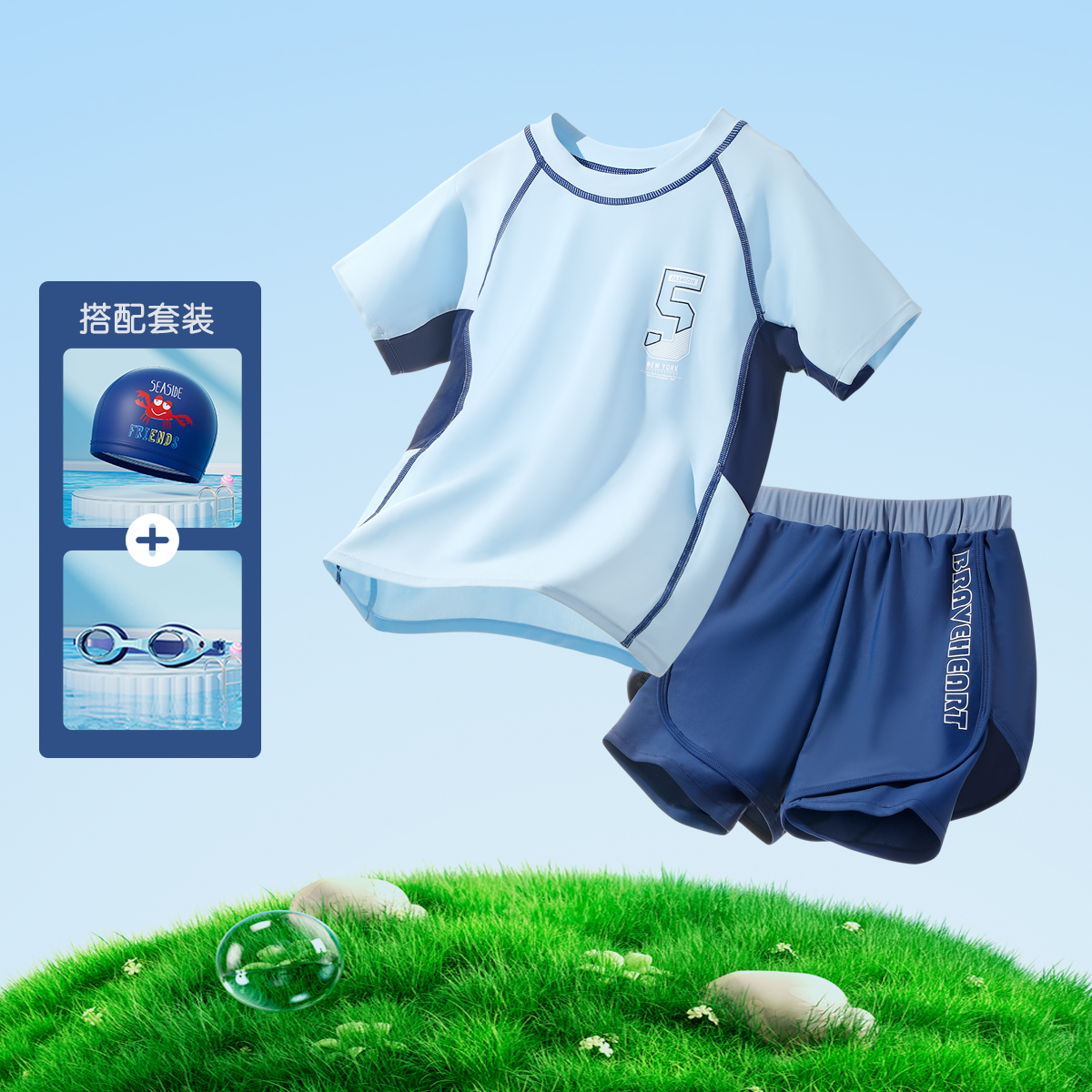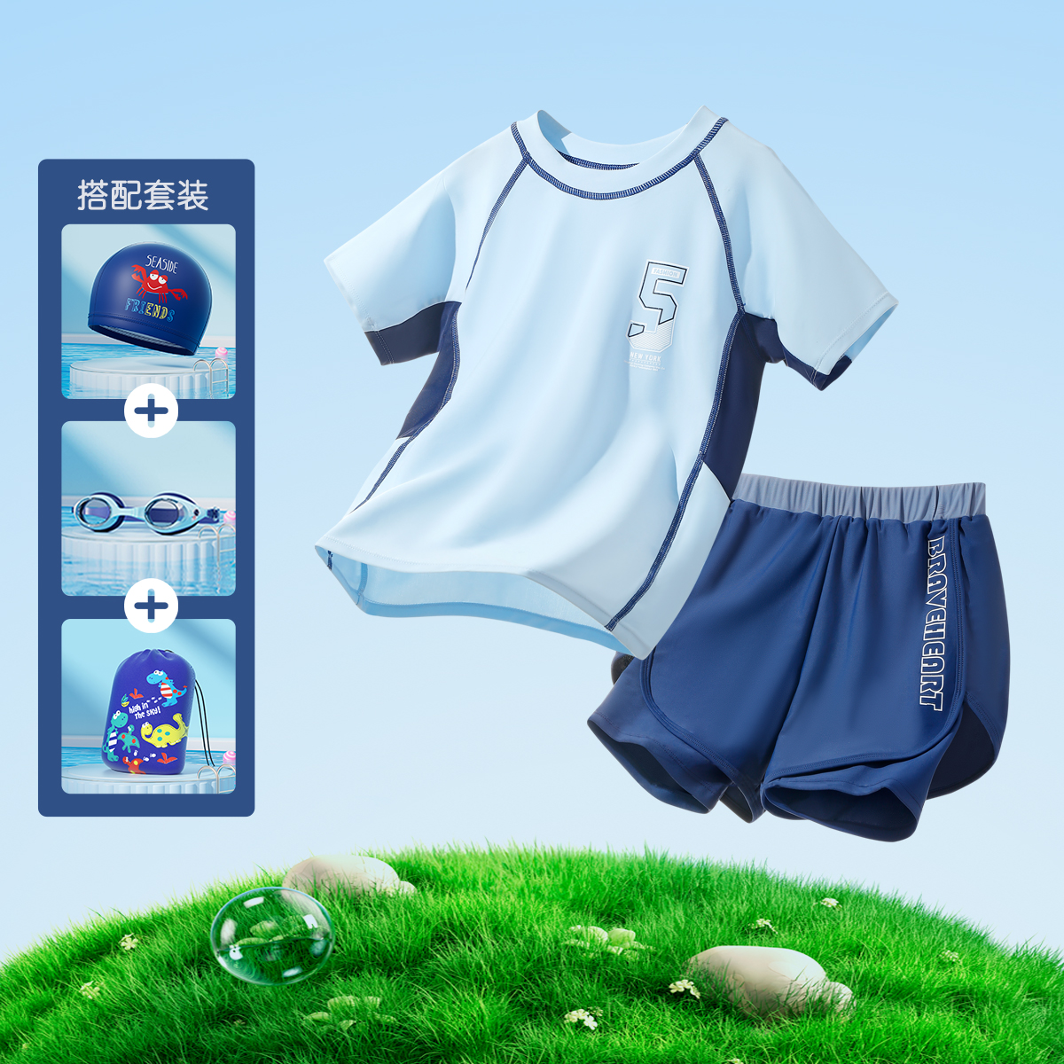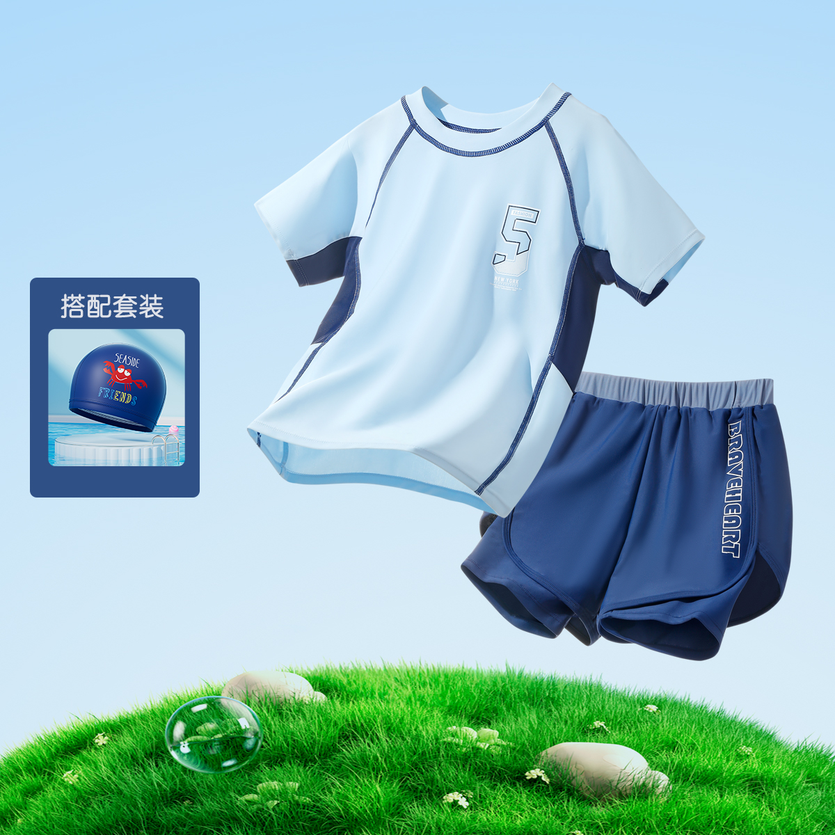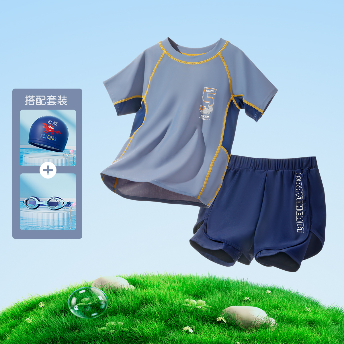 아동 수영복 소년 2025 새로운 여름 중대형 아동 스플릿 수영복 소년 더블 레이어 수영 트렁크 자외선 차단제 슈트스토어 가기