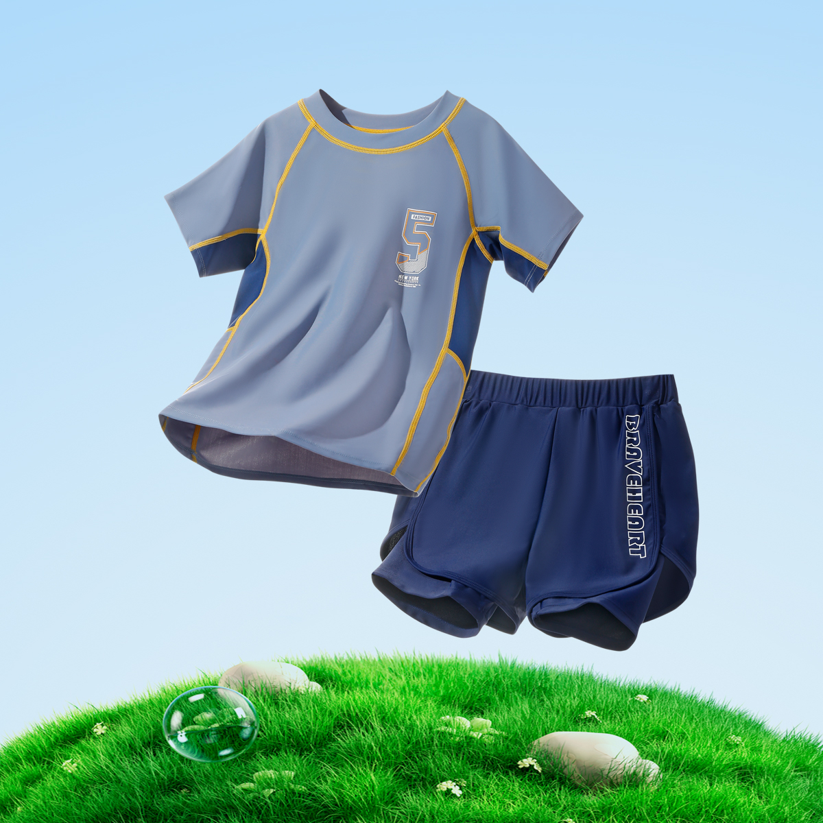 아동 수영복 소년 2025 새로운 여름 중대형 아동 스플릿 수영복 소년 더블 레이어 수영 트렁크 자외선 차단제 슈트