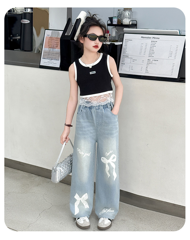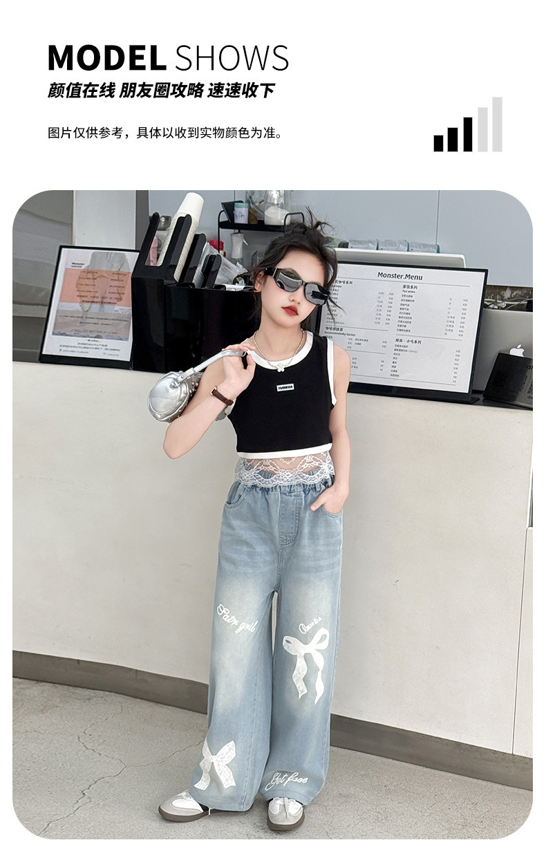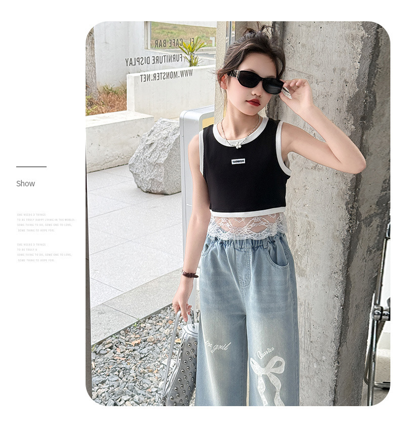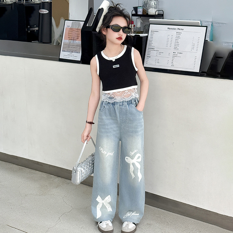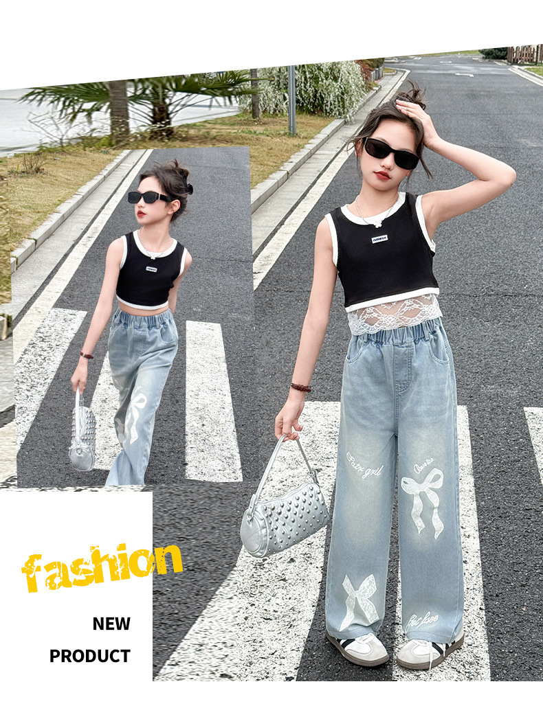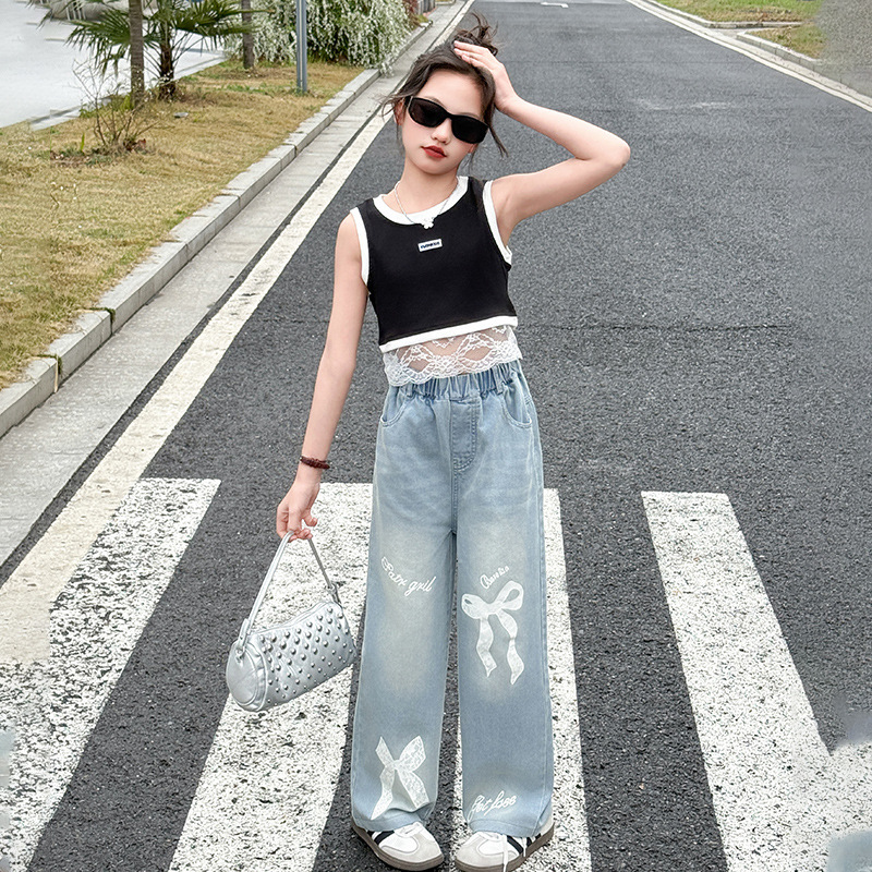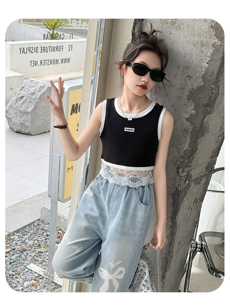 패션 활 조끼 여자 청바지 세트 소녀 한국 스타일 서양식 큰 아이들 여름 2025 조끼스토어 가기