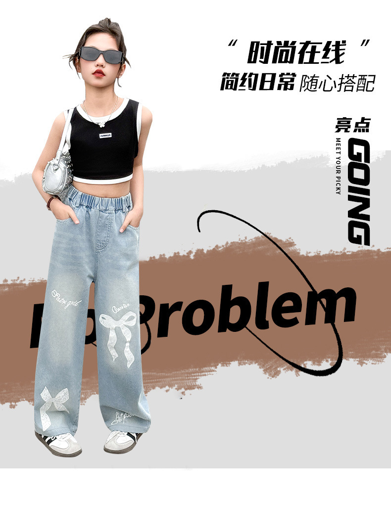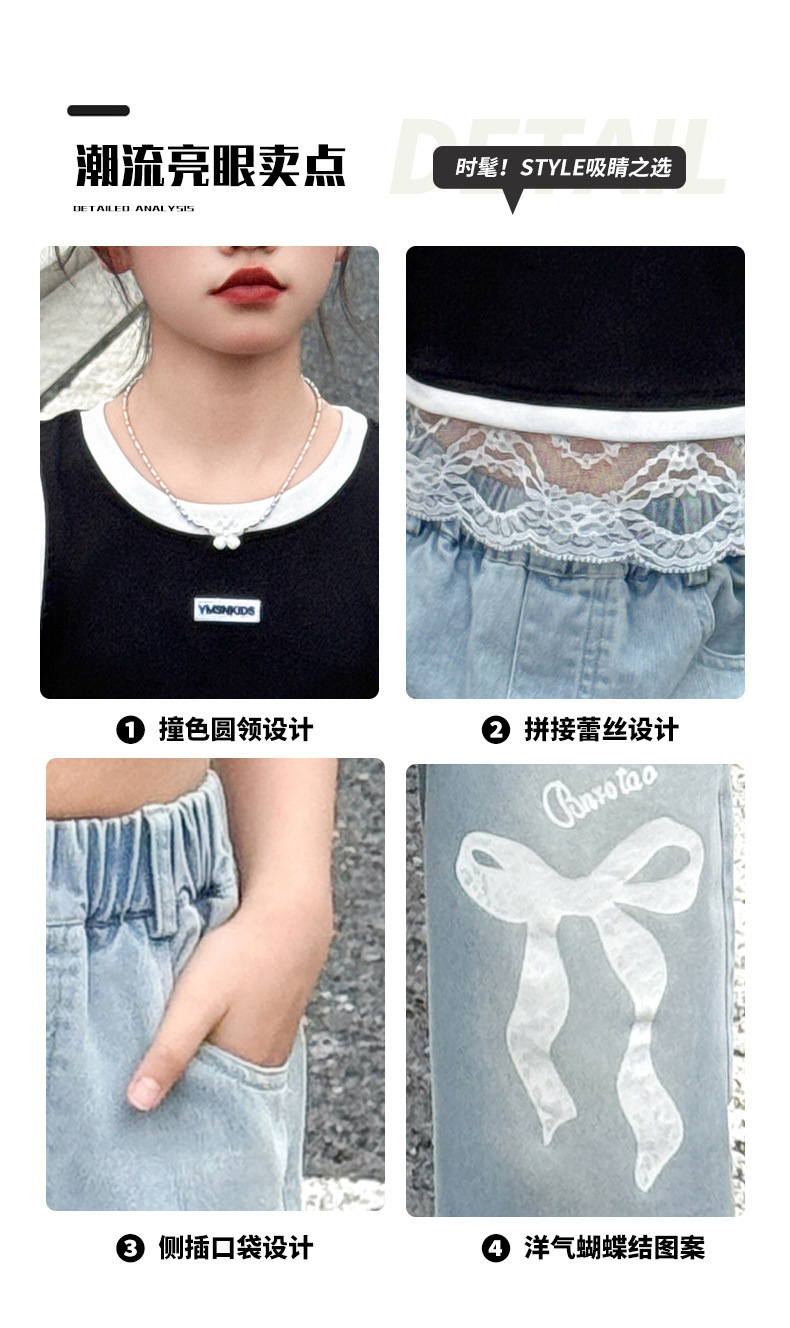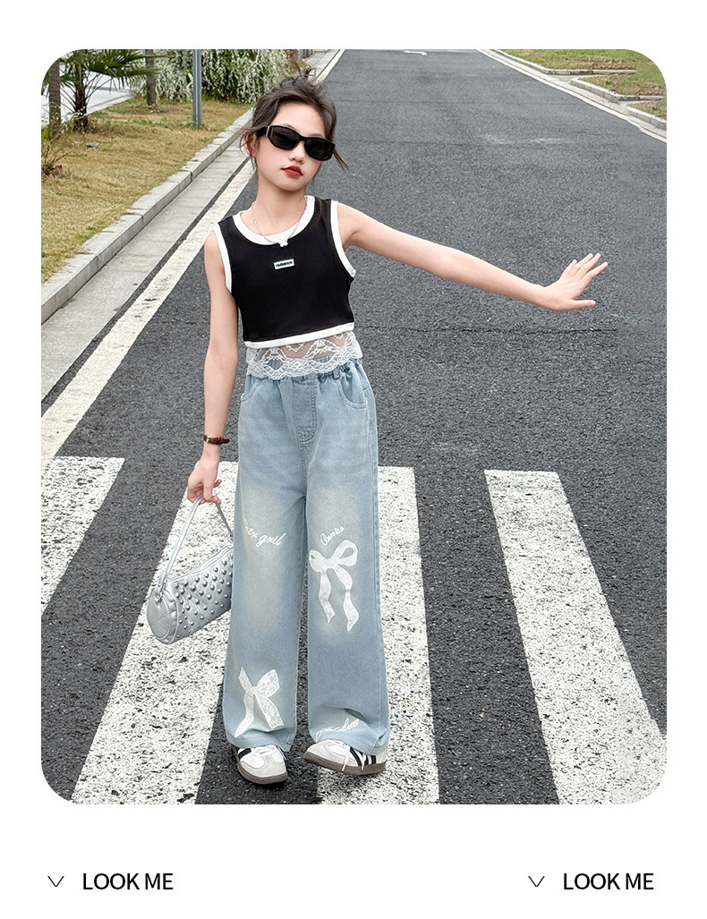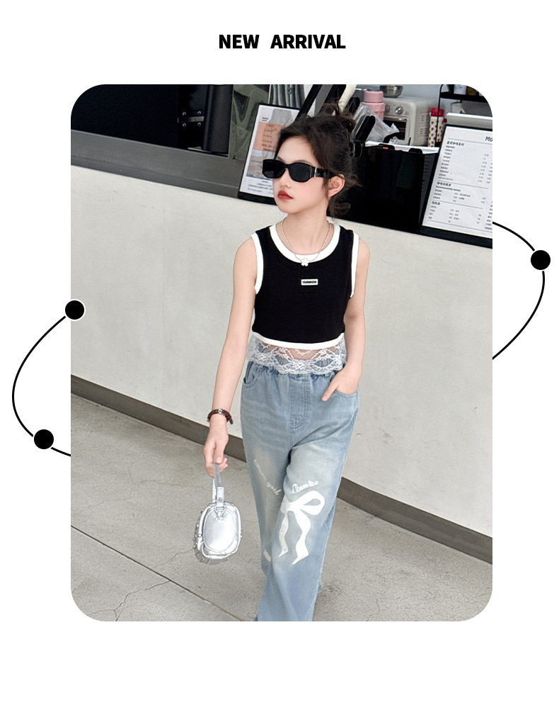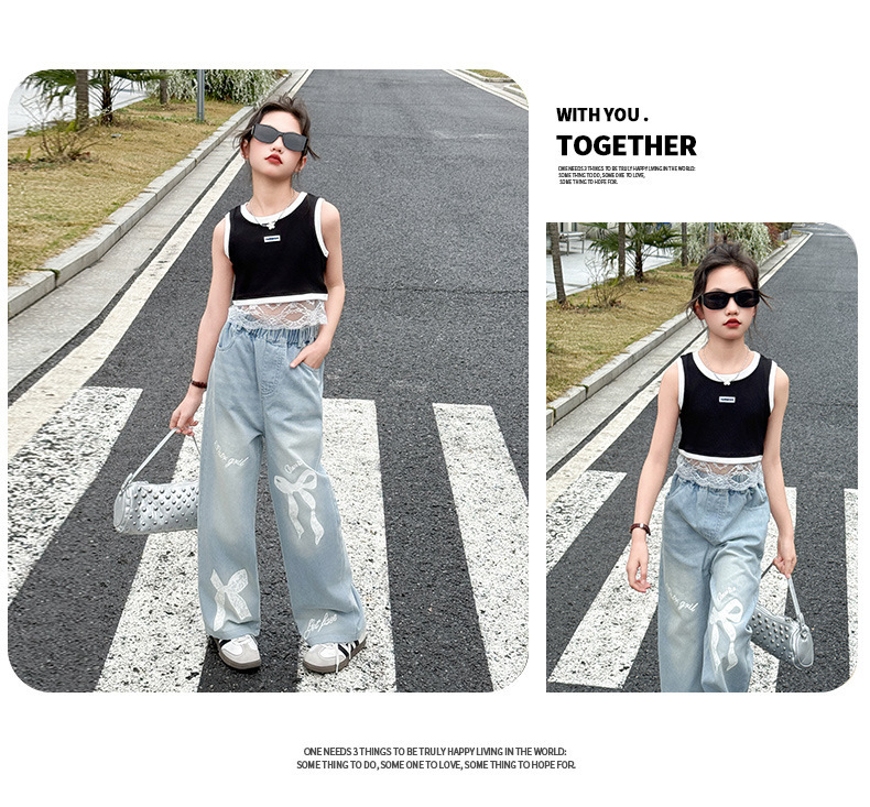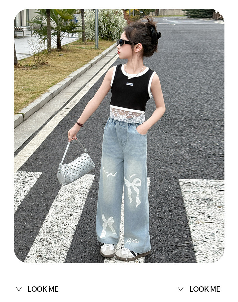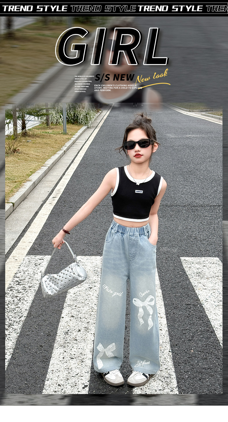 패션 활 조끼 여자 청바지 세트 소녀 한국 스타일 서양식 큰 아이들 여름 2025 조끼스토어 가기