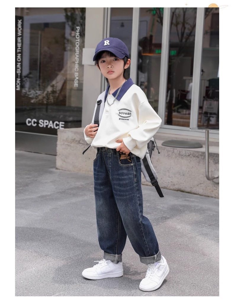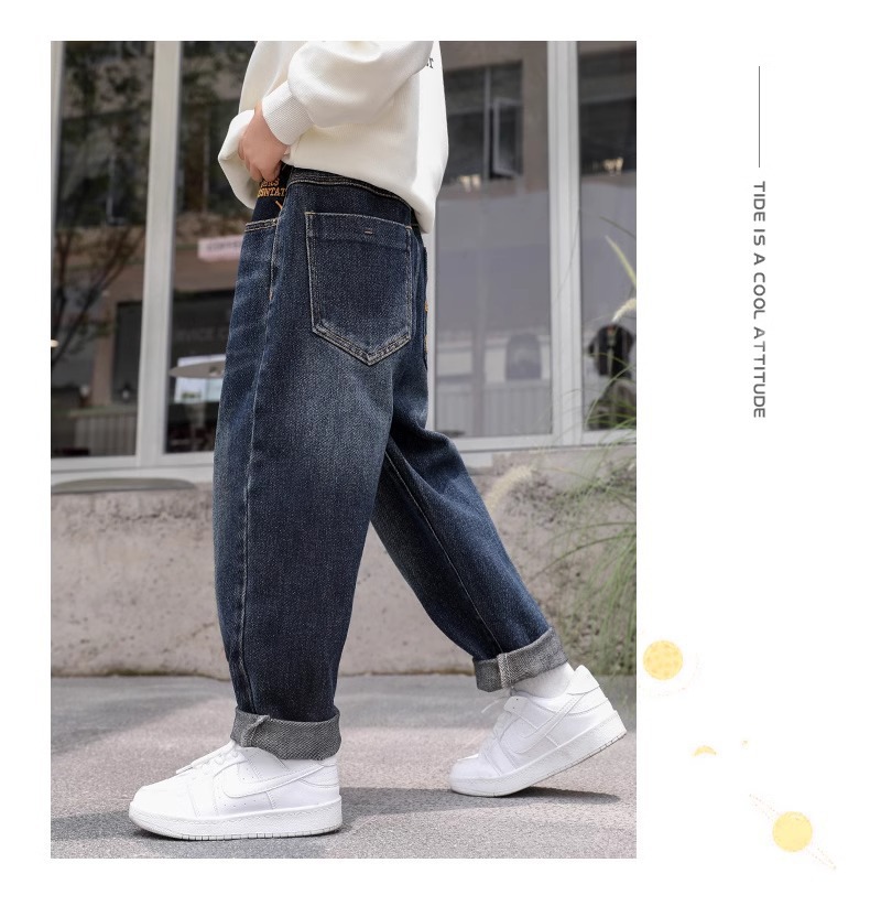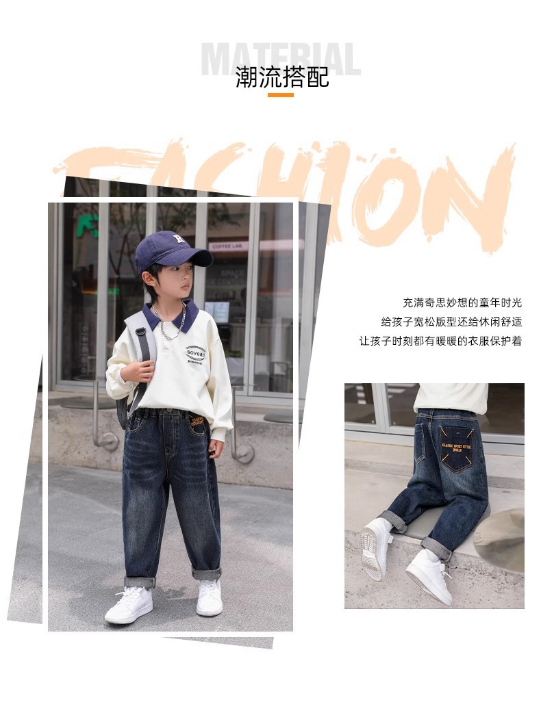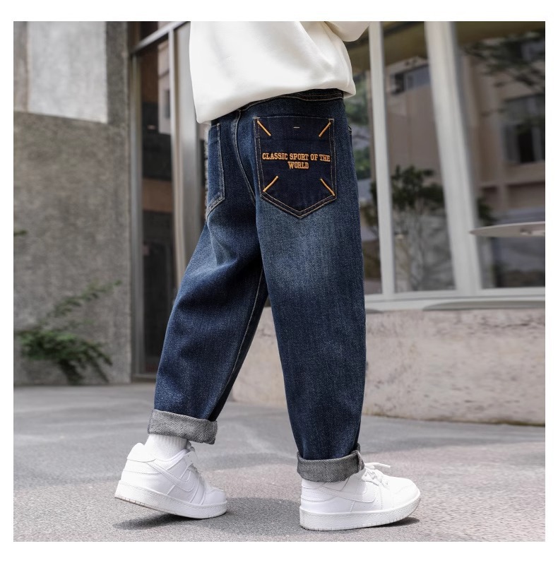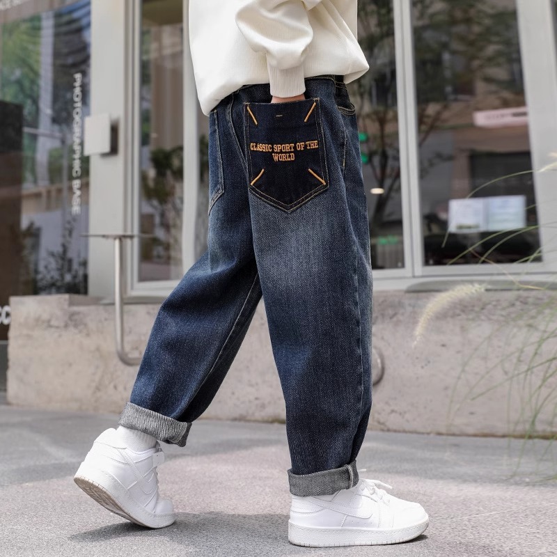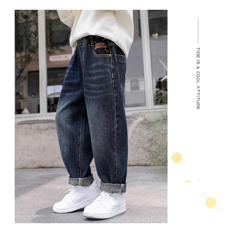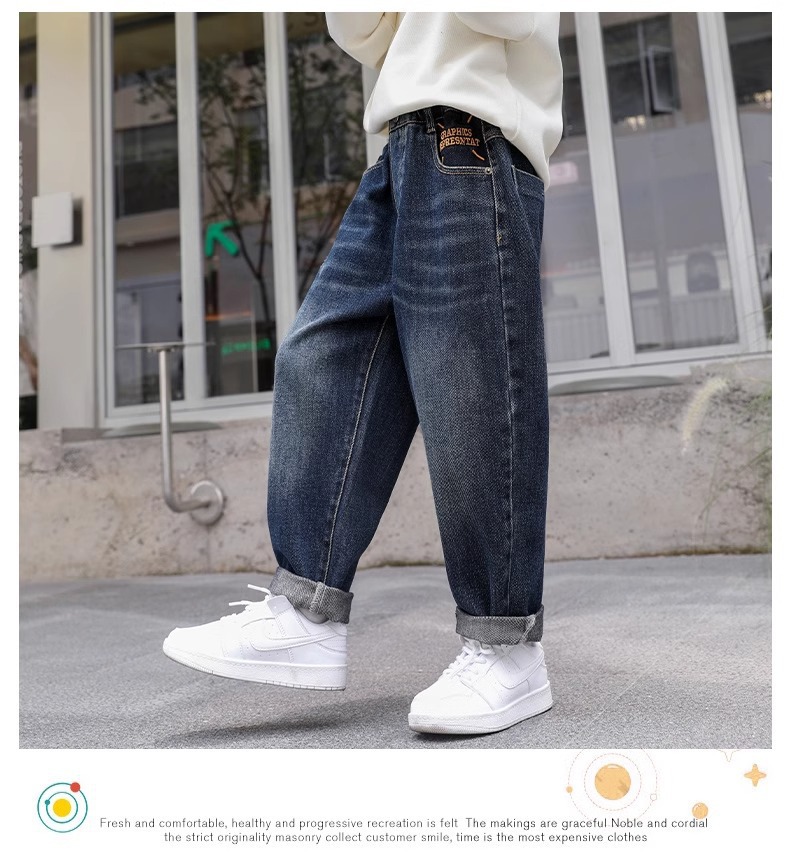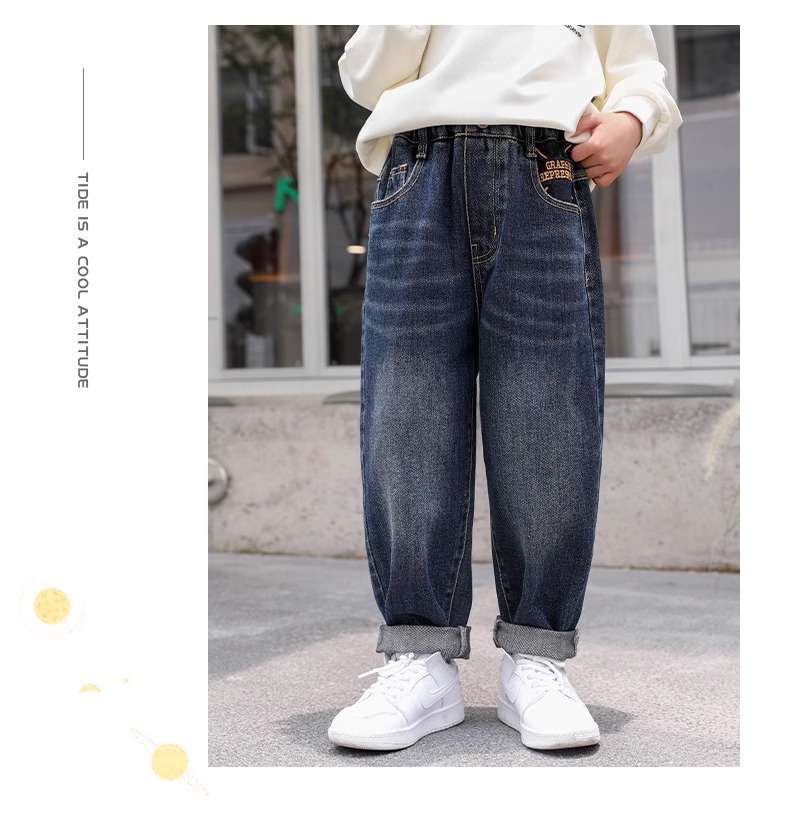 소년 바지 어린이 봄 청바지 2025 새로운 중대형 어린이 느슨한 바지 소년 봄, 가을 캐주얼 바지스토어 가기