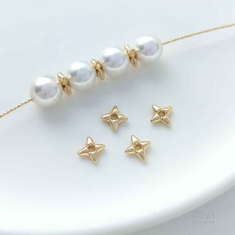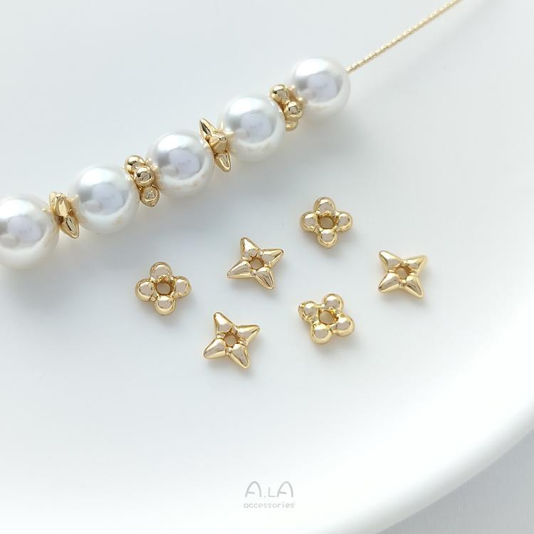 색상 보존 구리 피복 14K 리얼 골드 네모난 별 구슬 골드 콩 네잎 클로버 꽃 모양의 스페이서 DIY 수제 구슬 액세서리스토어 가기