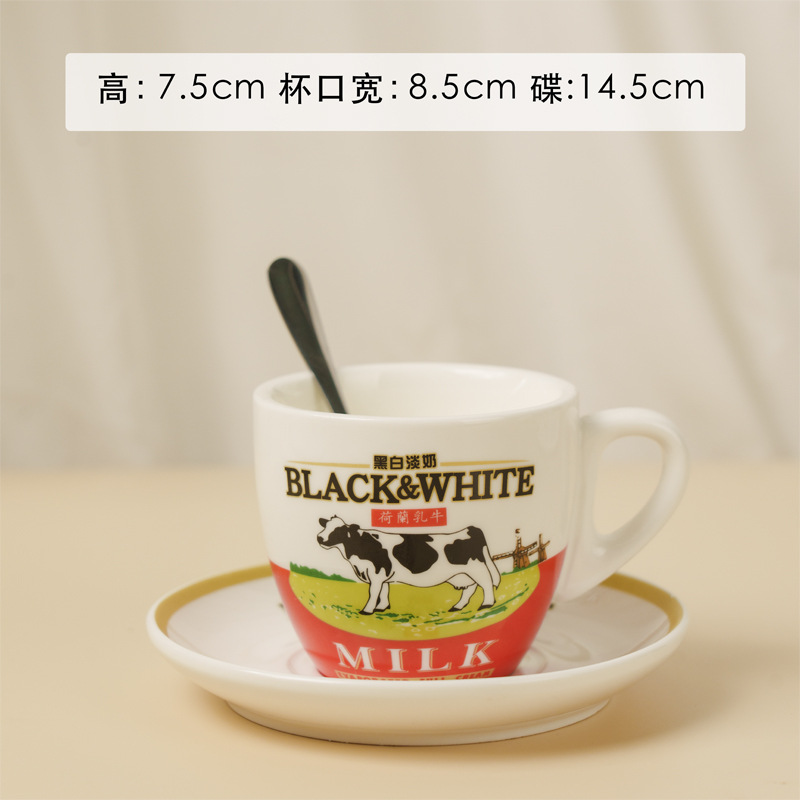 • 흑백 우유 컵과 접시