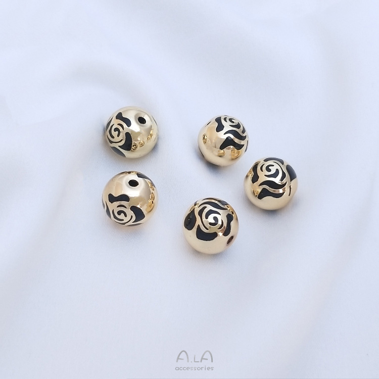• 블랙 12mm 로즈 글라스 비즈 1개