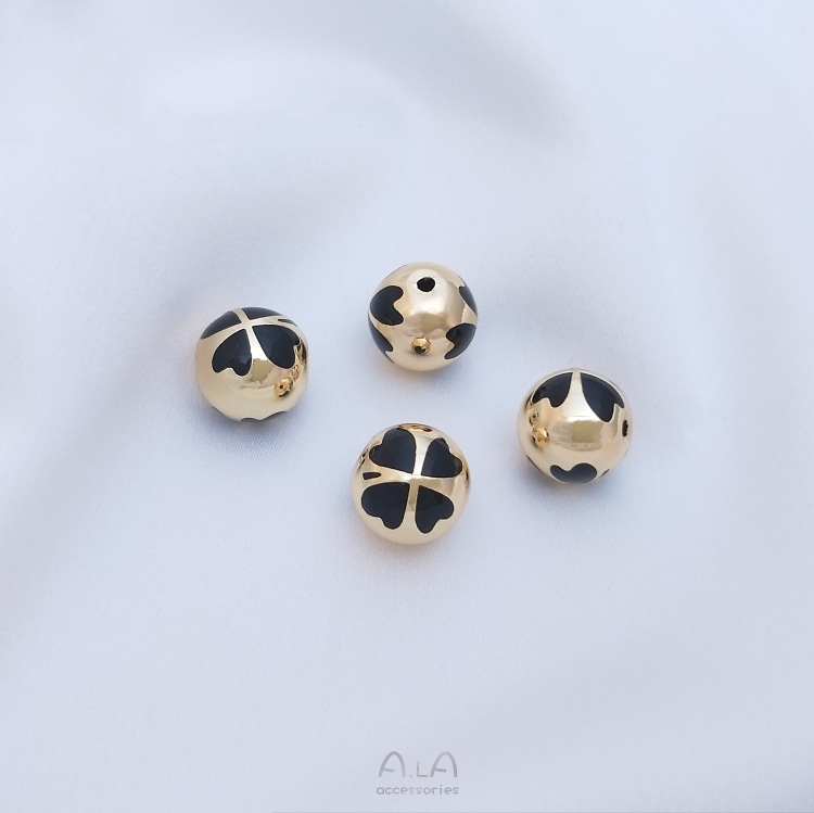 • 검정색 10mm 네잎 클로버 유리구슬 1개