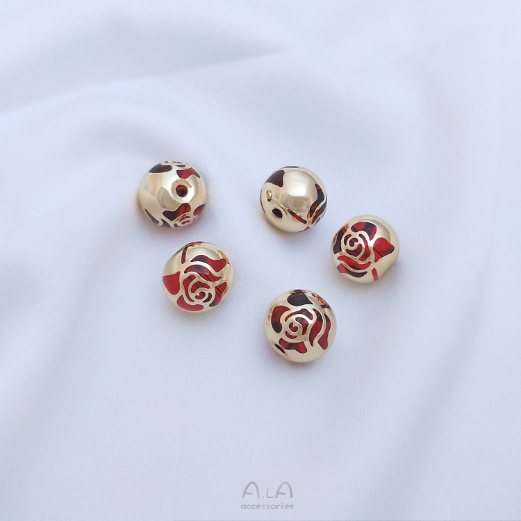 • 레드 12mm 로즈 글레이즈 비즈 1개