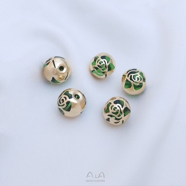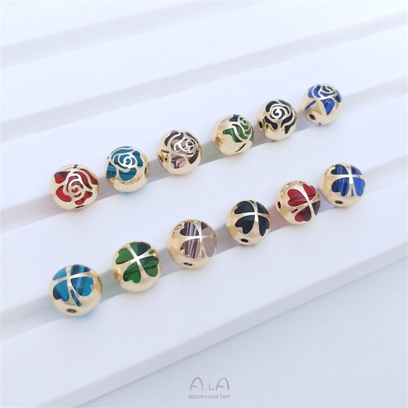 색상 보존 14K 금으로 채워진 일본 유리 구슬 네잎 클로버 장미 패턴 구슬 수제 보석 팔찌 구슬이 있는 목걸이스토어 가기