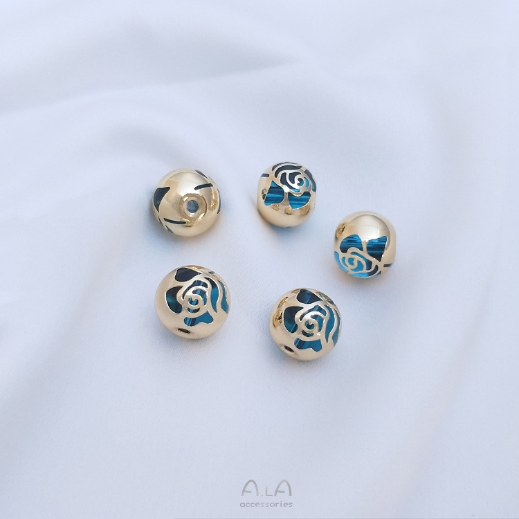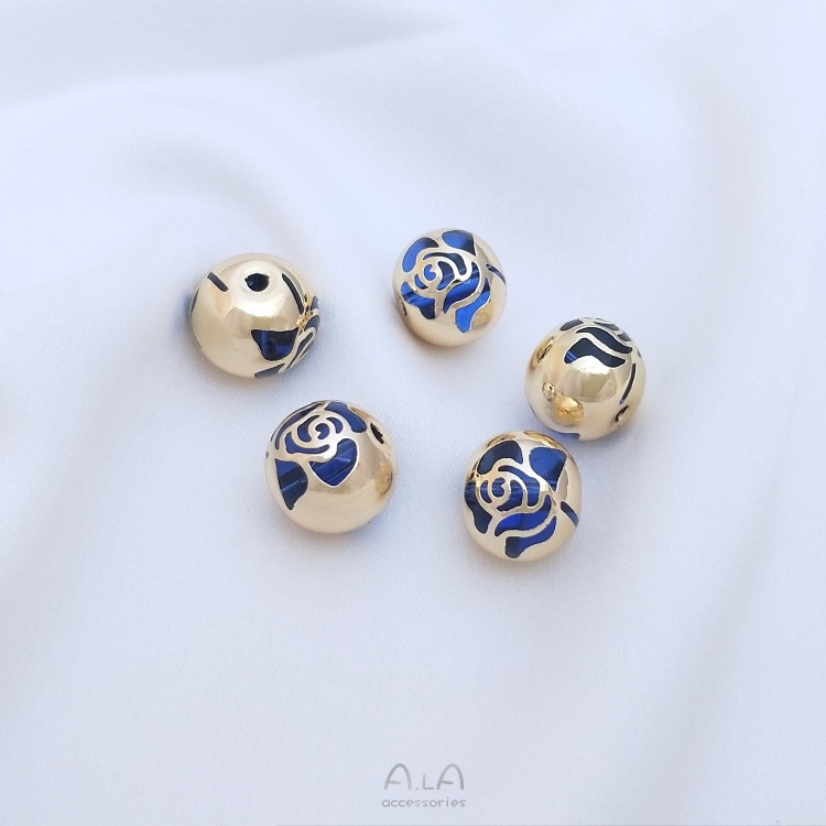 • 레이크 블루 10mm 로즈 글레이즈 라운드 비즈 1개