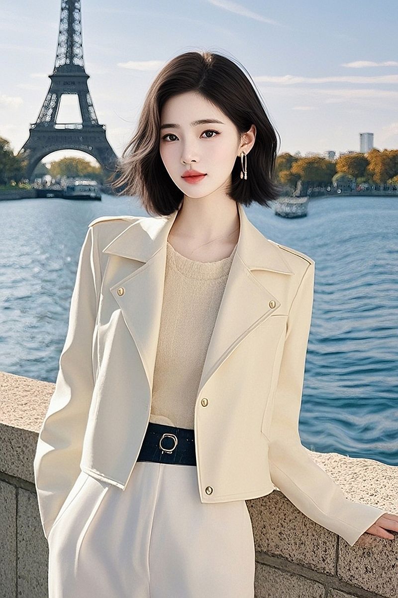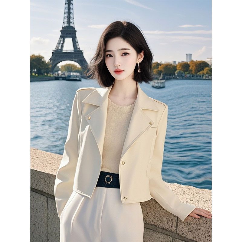 몸집이 작지만 멋지고 독특하며 매우 멋진 짧은 재킷, 여성용 고급 화이트 가죽 재킷, 초봄스토어 가기