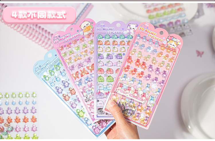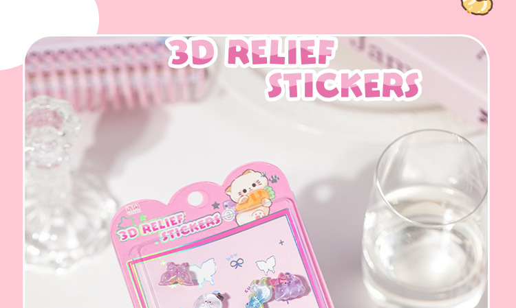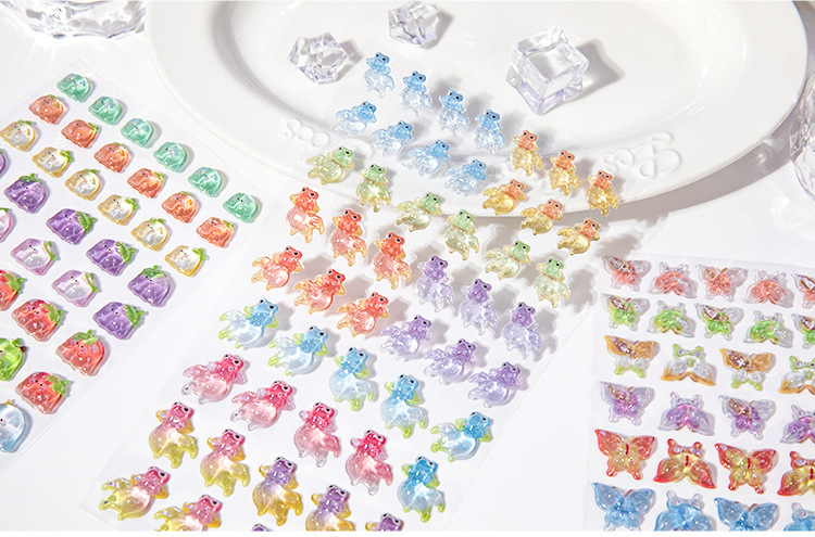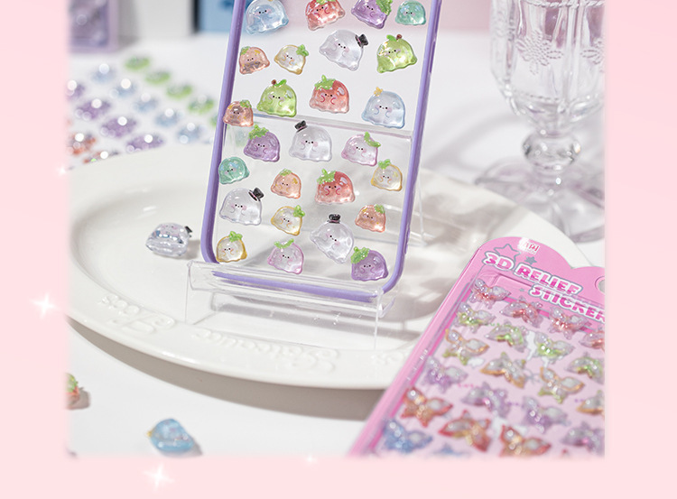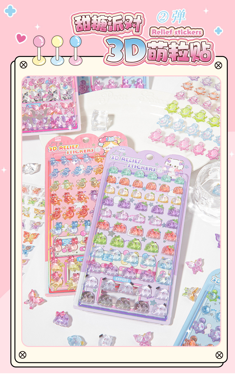 언어 레저 3D 구호 귀여운 곡물 스티커 달콤한 사탕 파티 2-귀여운 만화 동물 DIY 손 계정 전화 쉘 네일 스티커 플레이