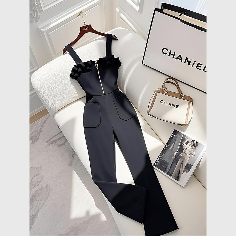 검은 스트랩 바지 2025 봄 새로운 도착 우아한 한 조각 슬림 바지 여성용