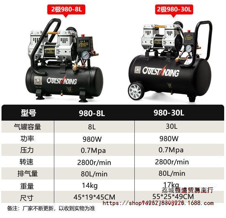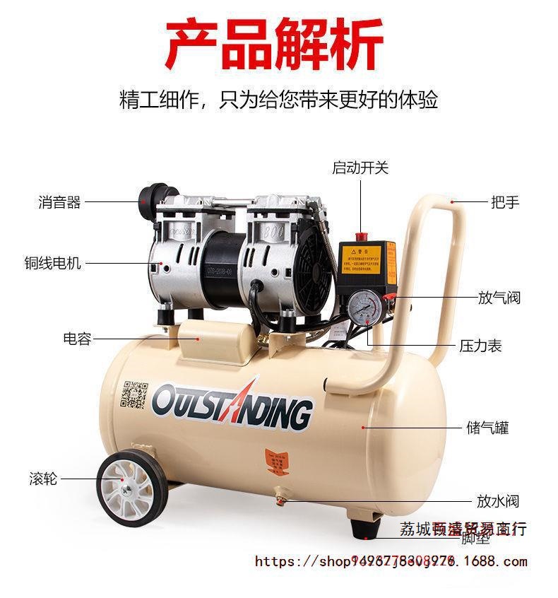 공기 펌프 공기 압축기 팽창식 220V 공기 압축기 페인트 무테 오일없는 Tus 공기 펌프 목공 작은 Ao스토어 가기