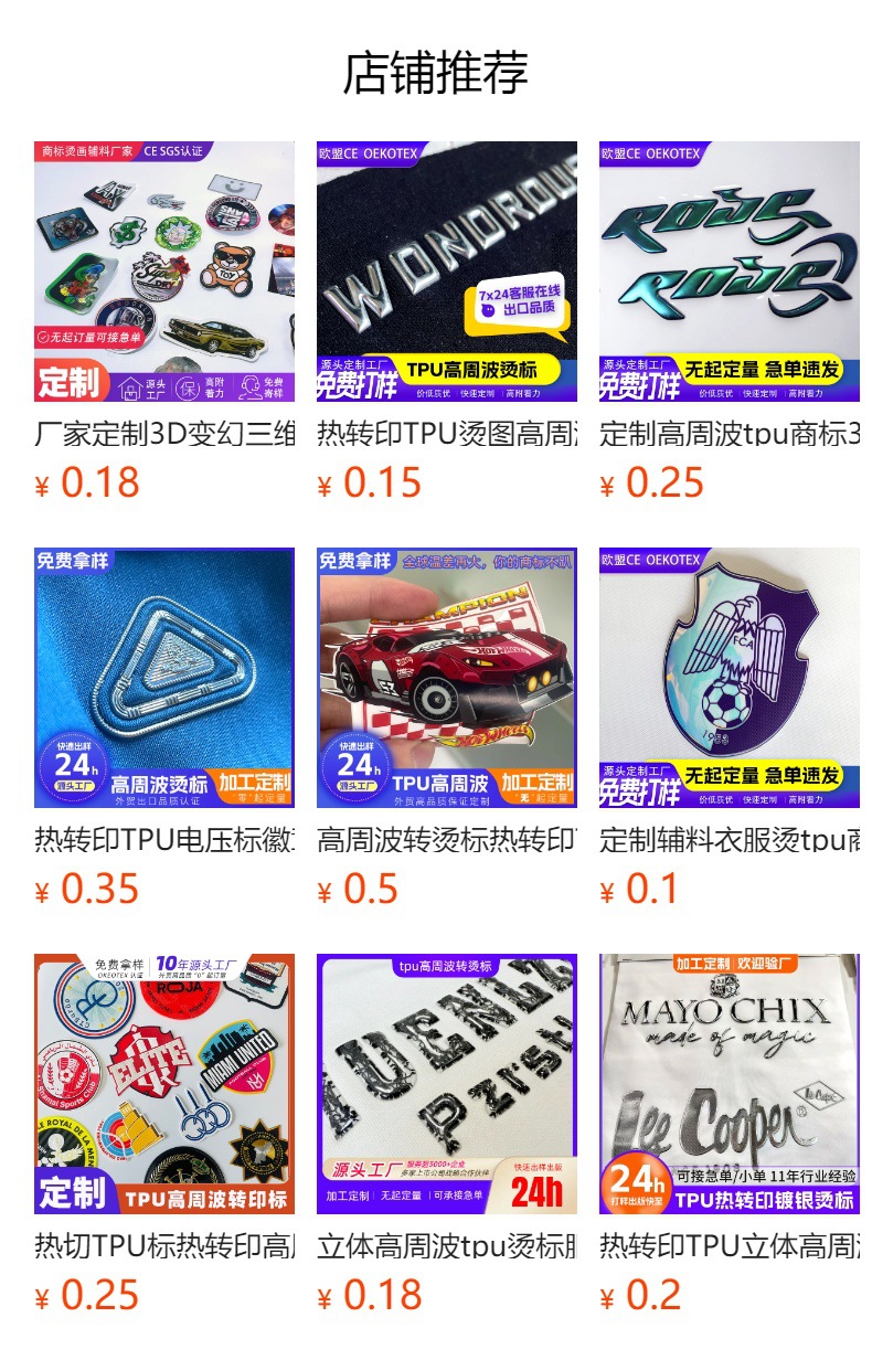 TPU 고주파 전압 라벨 고주파 고무 스탬프 상표 소프트 고무 의류 가방 로고 핫 스탬프 처리 사용자 정의스토어 가기
