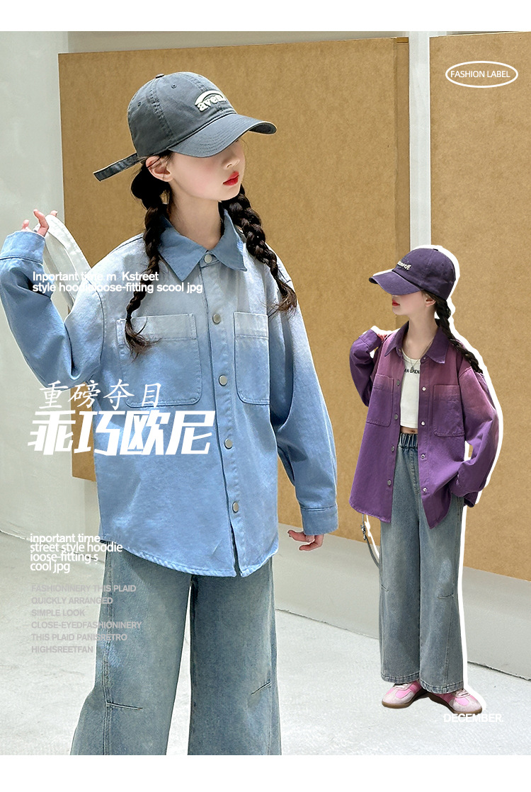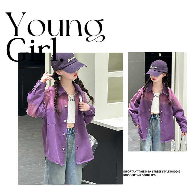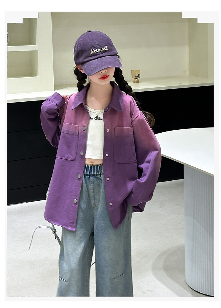여아 봄 긴팔 그라데이션 셔츠 재킷 2025 세련된 아동 봄, 가을 옷 중대형 아동용 상의스토어 가기