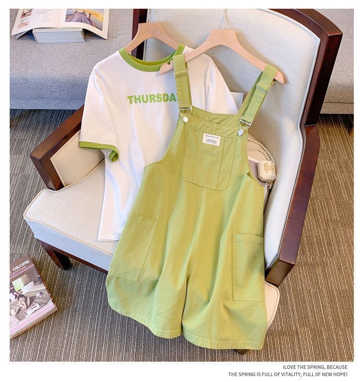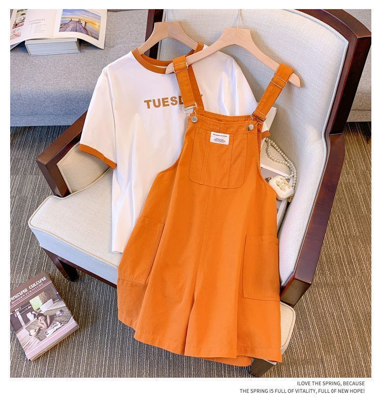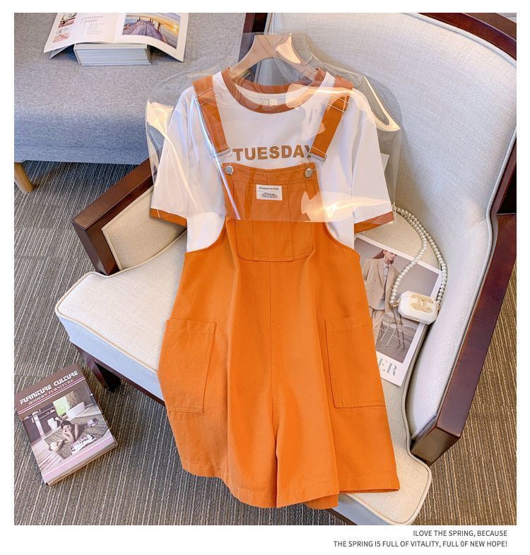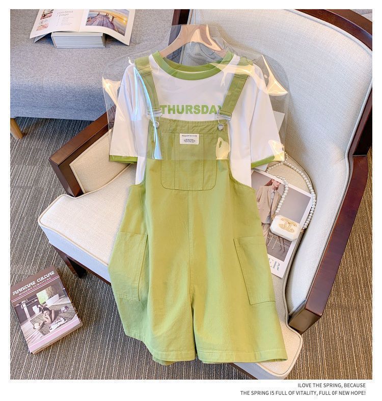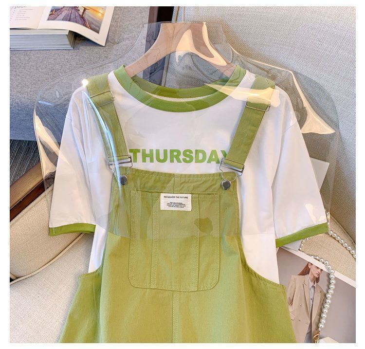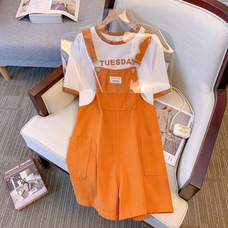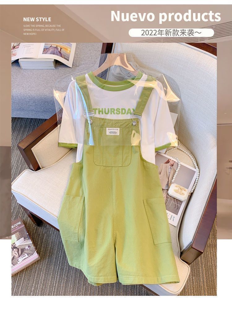 소녀 멜빵 세트 2025 년 여름 새로운 어린이 패션 반팔 티셔츠 와이드 레그 반바지 투피스 세트스토어 가기
