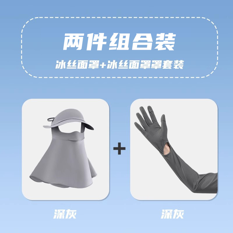 • 라이트 그레이 장갑 + 챙 마스크 [자외선 차단 세트]