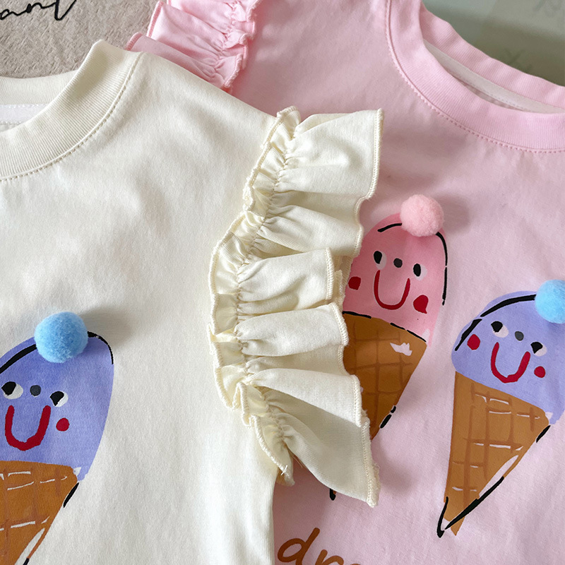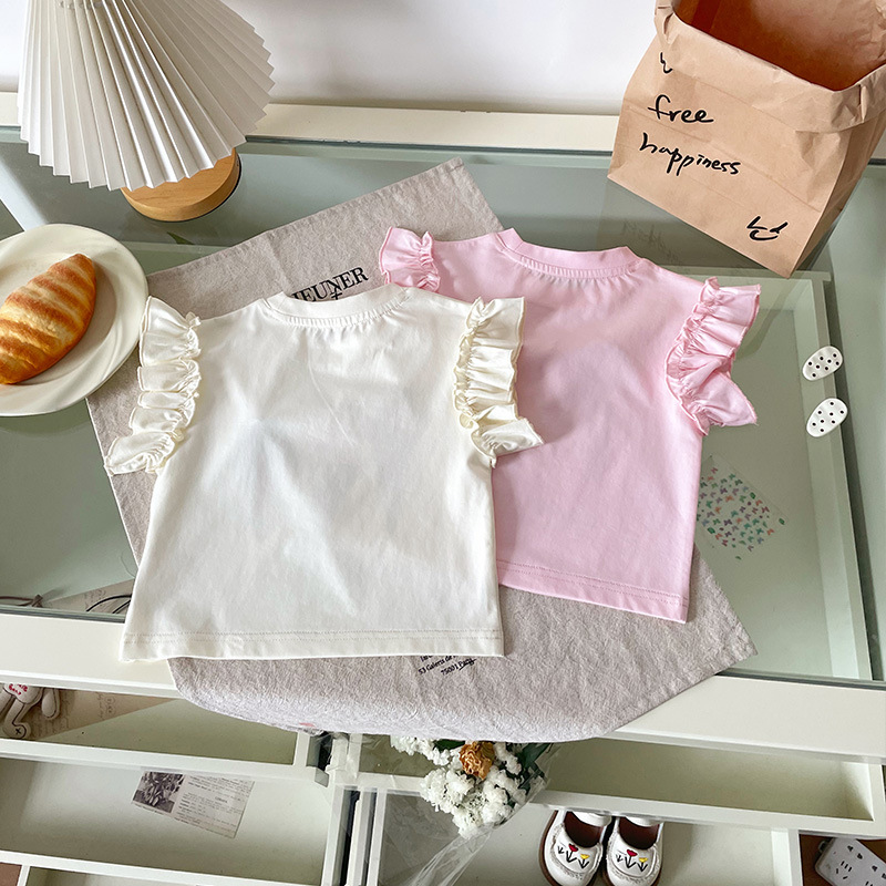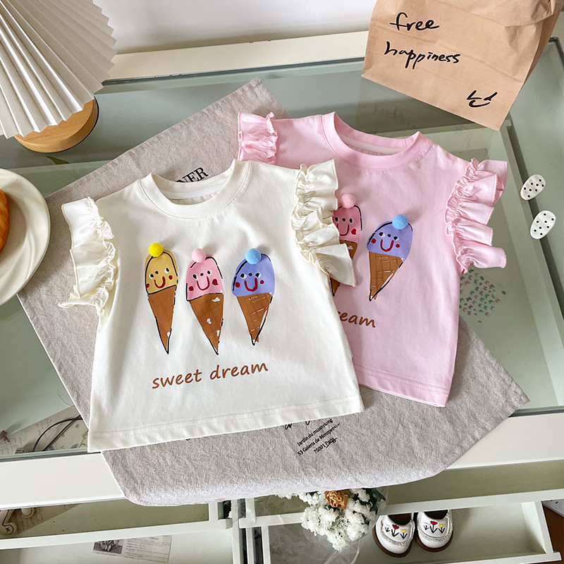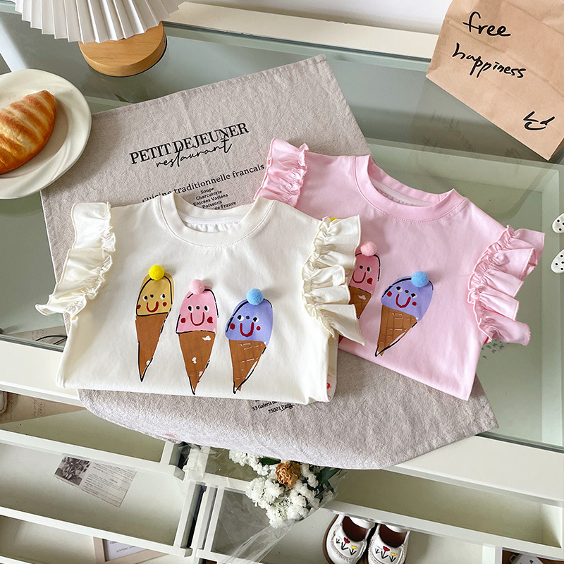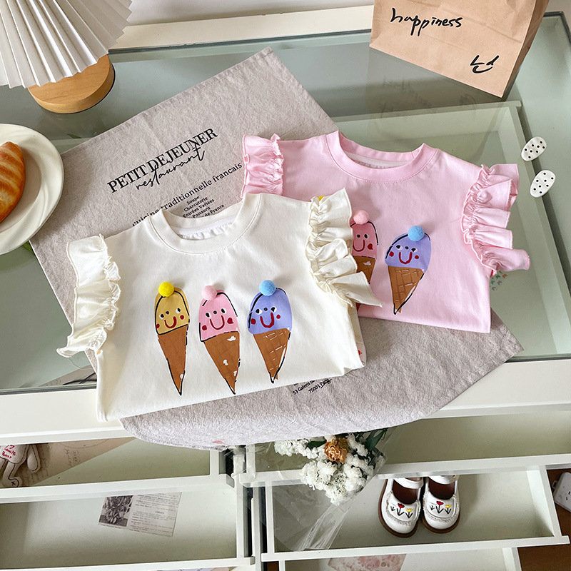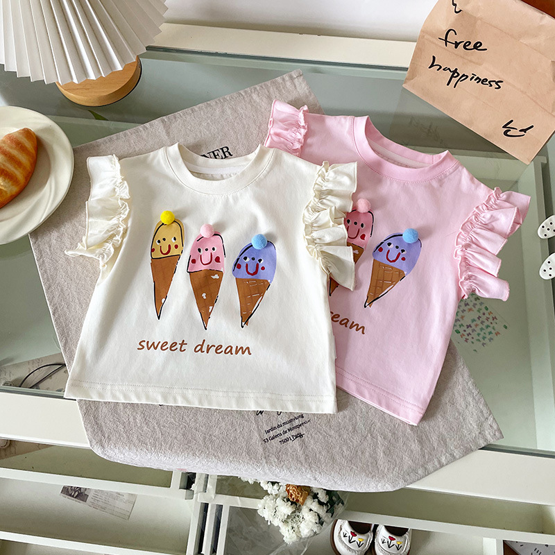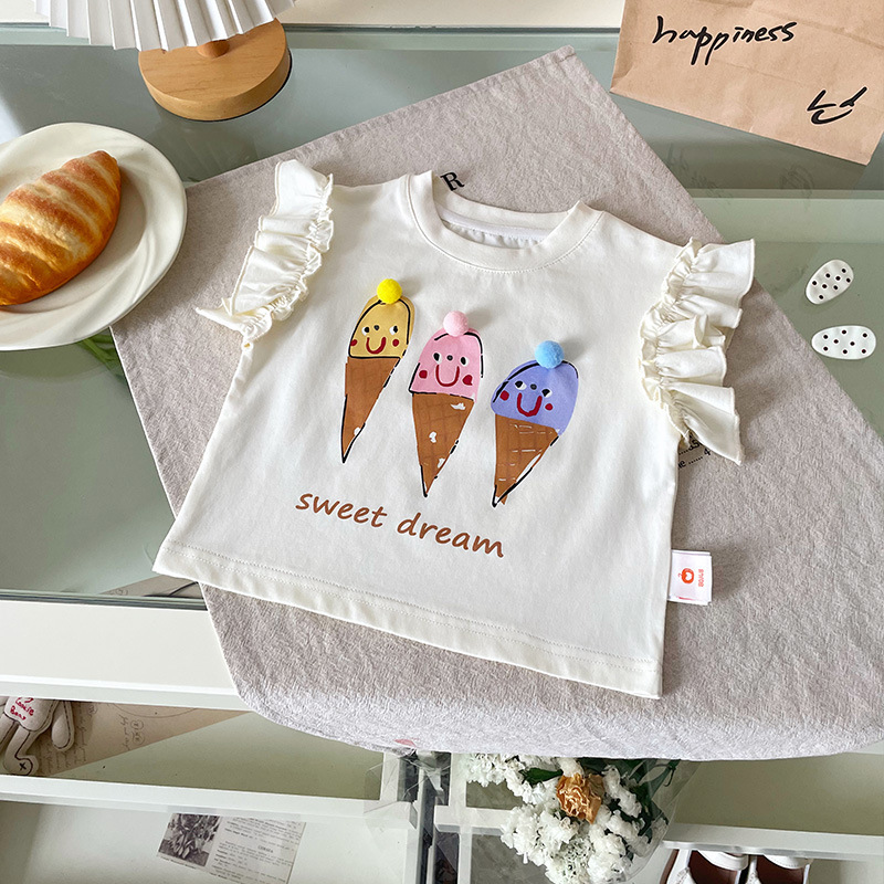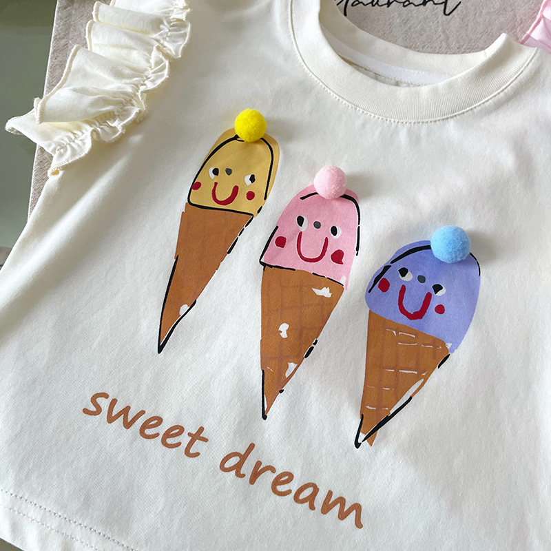 [재고 있음] XY251362 여아 티셔츠 2025 여름 신작 만화 콘 프린트 패셔너블 아동 티셔츠