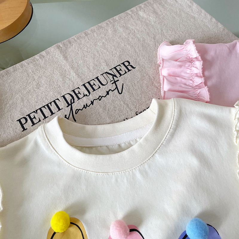 [재고 있음] XY251362 여아 티셔츠 2025 여름 신작 만화 콘 프린트 패셔너블 아동 티셔츠스토어 가기