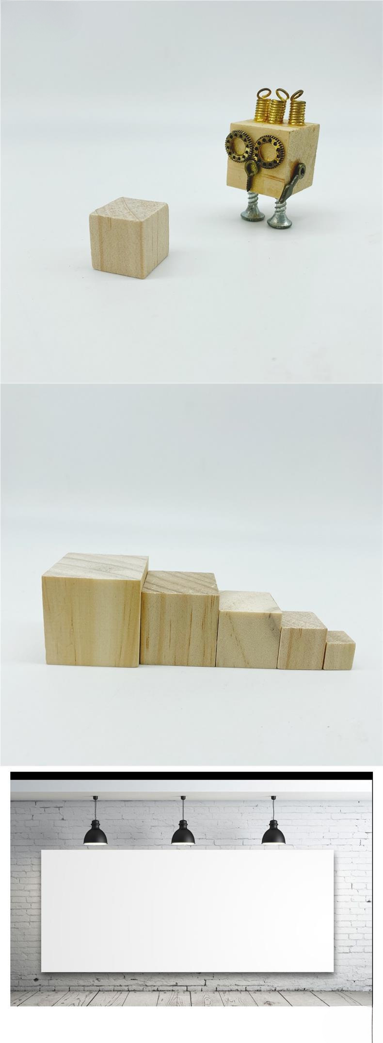 나무 블록 수제 DIY Steampunk 작은 로봇 정육면체 빌딩 블록 수학 교육 보조 건물 모델 재료