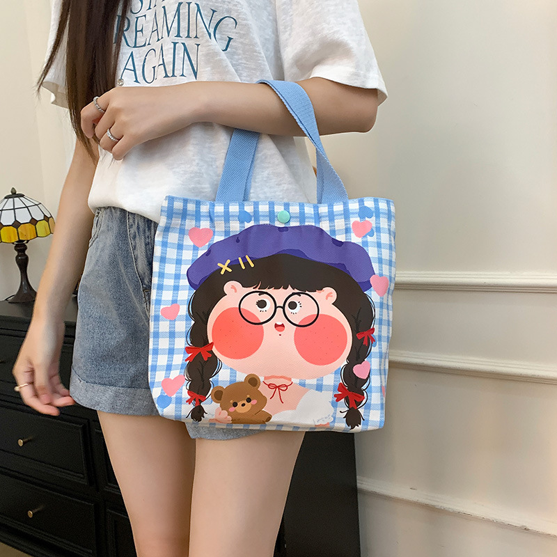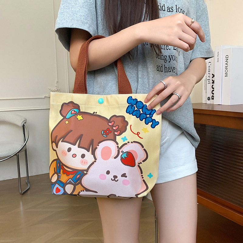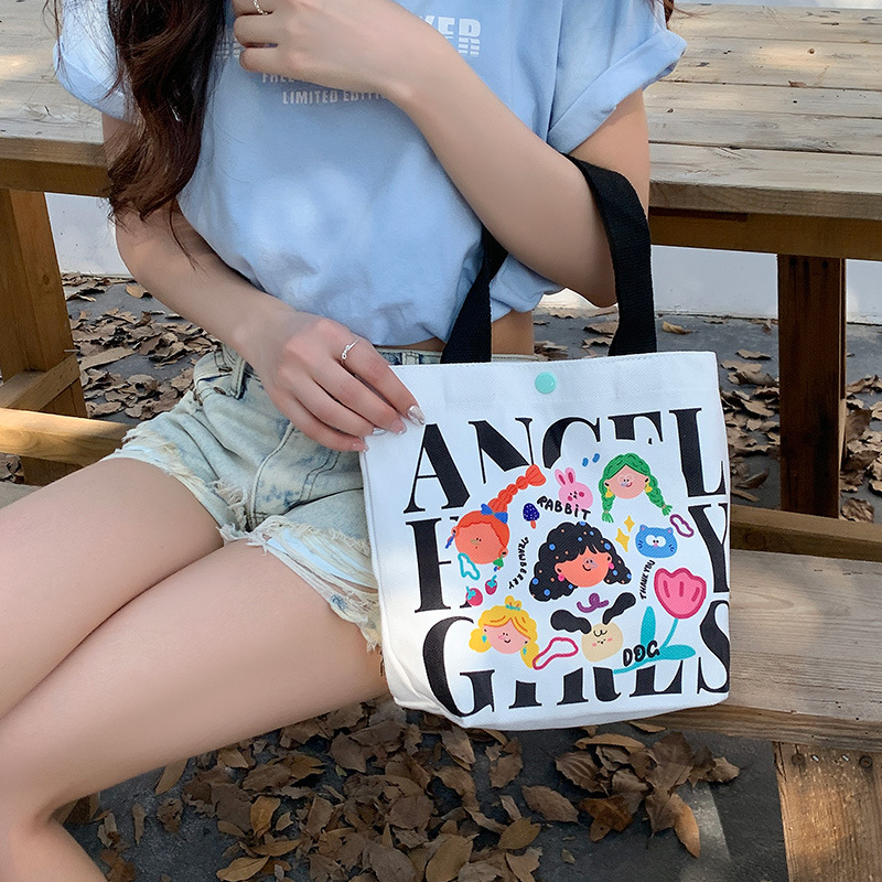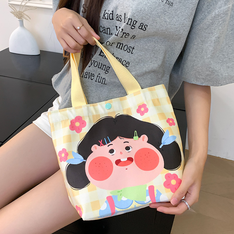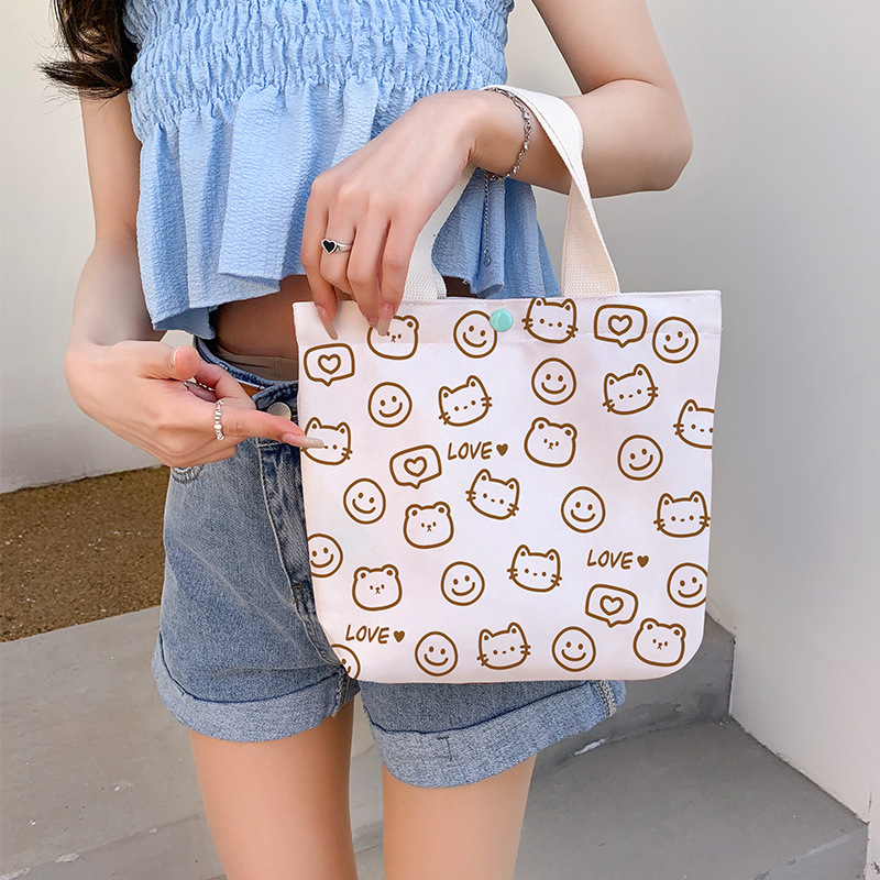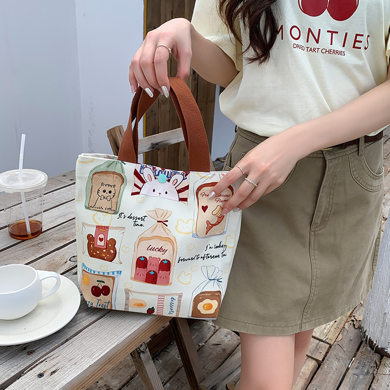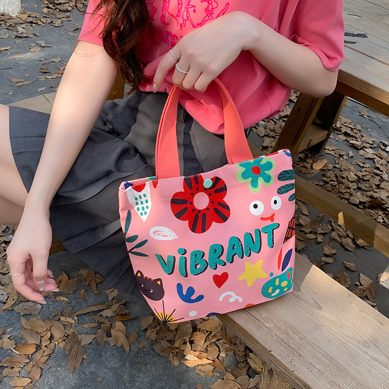 핸드백 패션 외출 캔버스 가방 여성의 새로운 달콤한 점심 가방 작은 스낵 가방 도시락 통근 핸드백