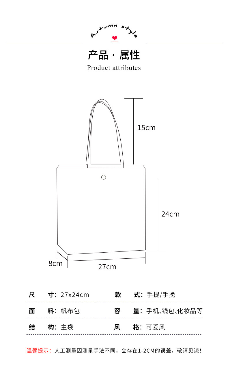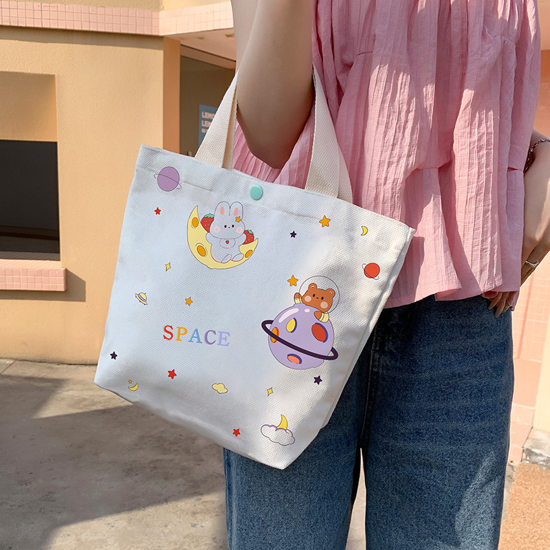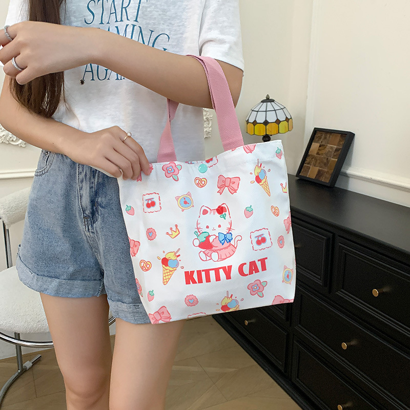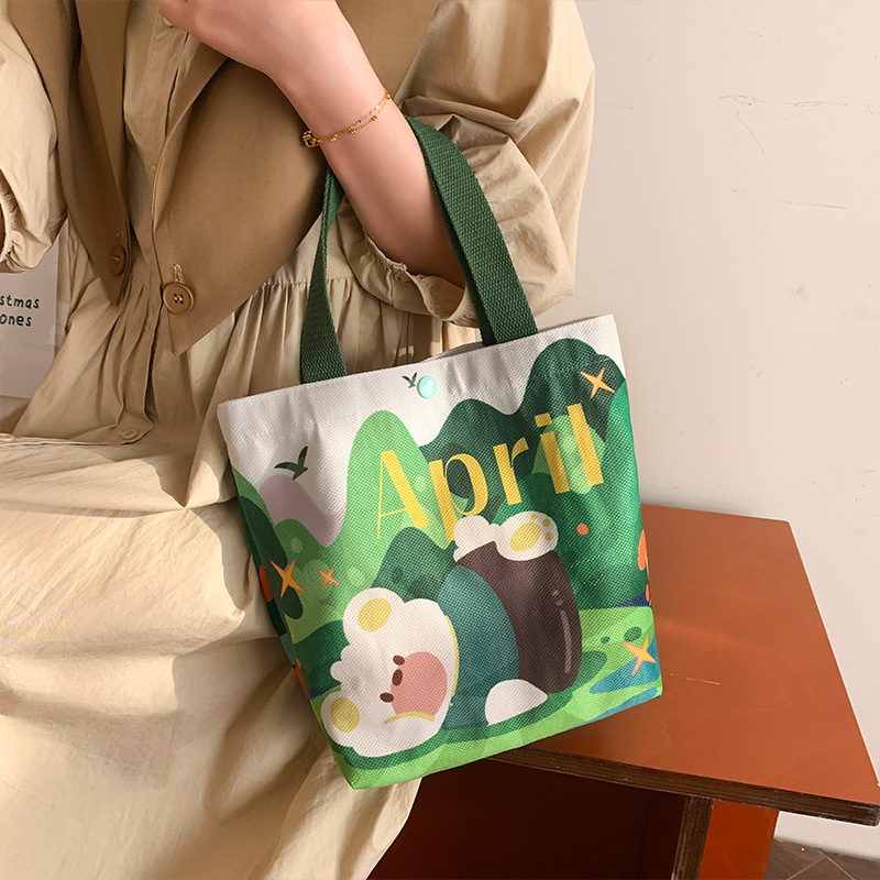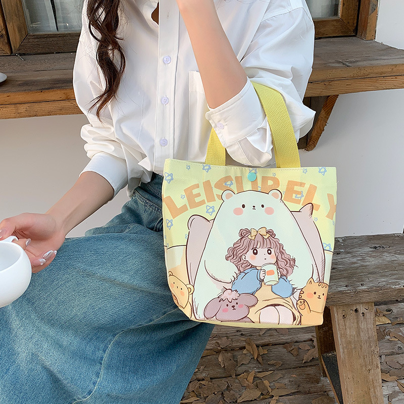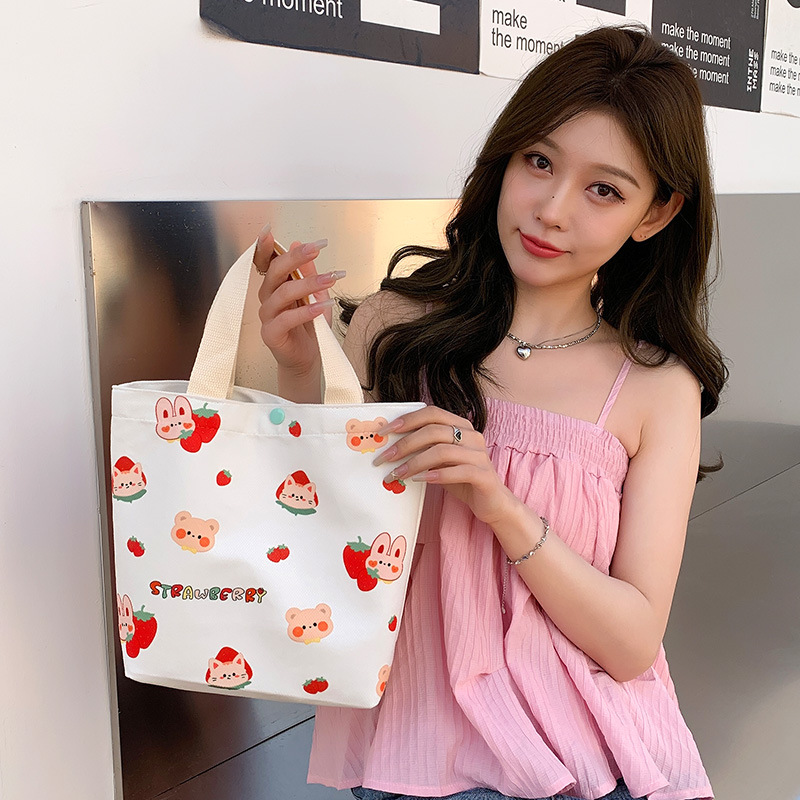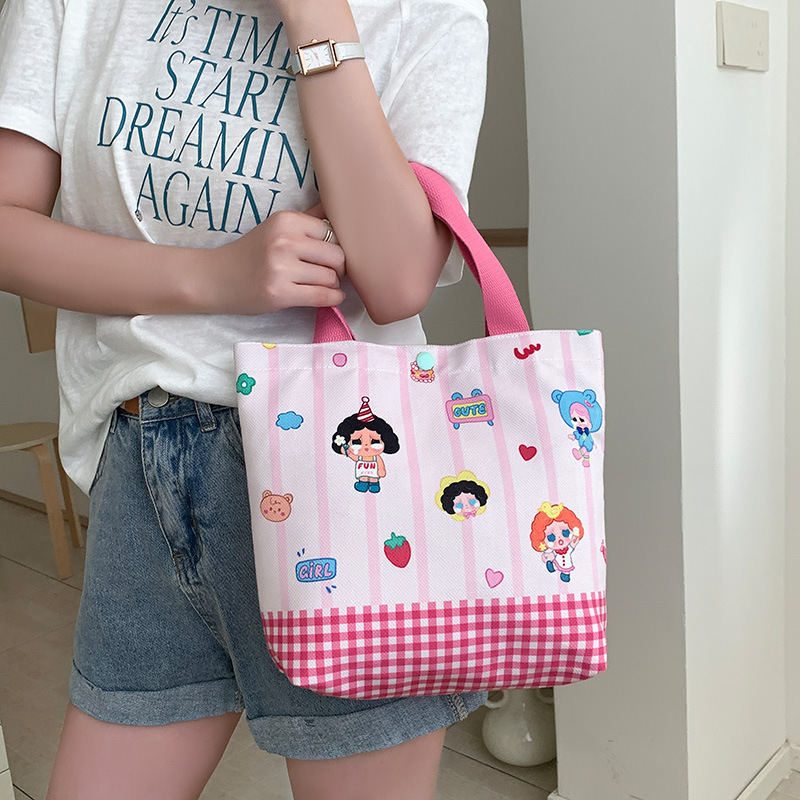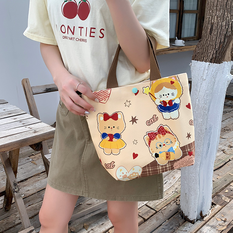 핸드백 패션 외출 캔버스 가방 여성의 새로운 달콤한 점심 가방 작은 스낵 가방 도시락 통근 핸드백스토어 가기