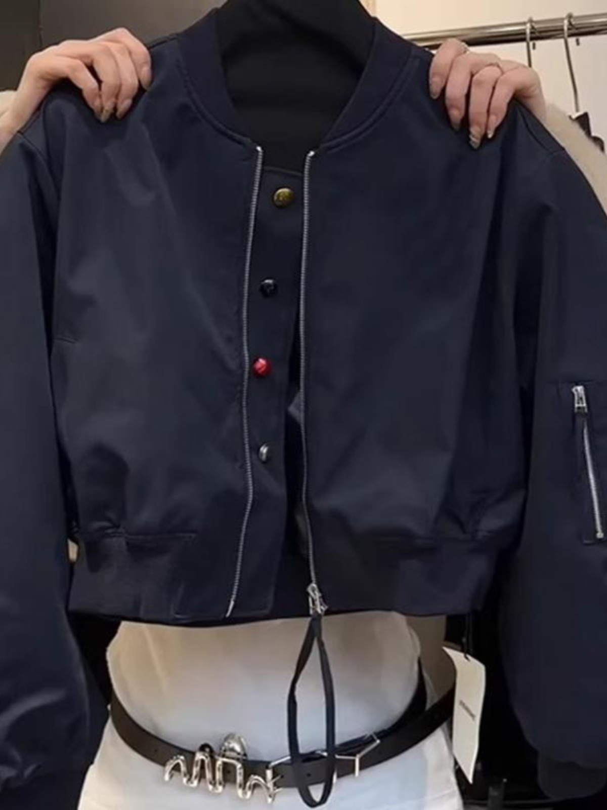 2025년 봄 여성을 위한 블랙 하이엔드 짧은 야구 재킷 새로운 스타일 슈퍼 멋진 캐주얼 핸섬 재킷 탑스토어 가기