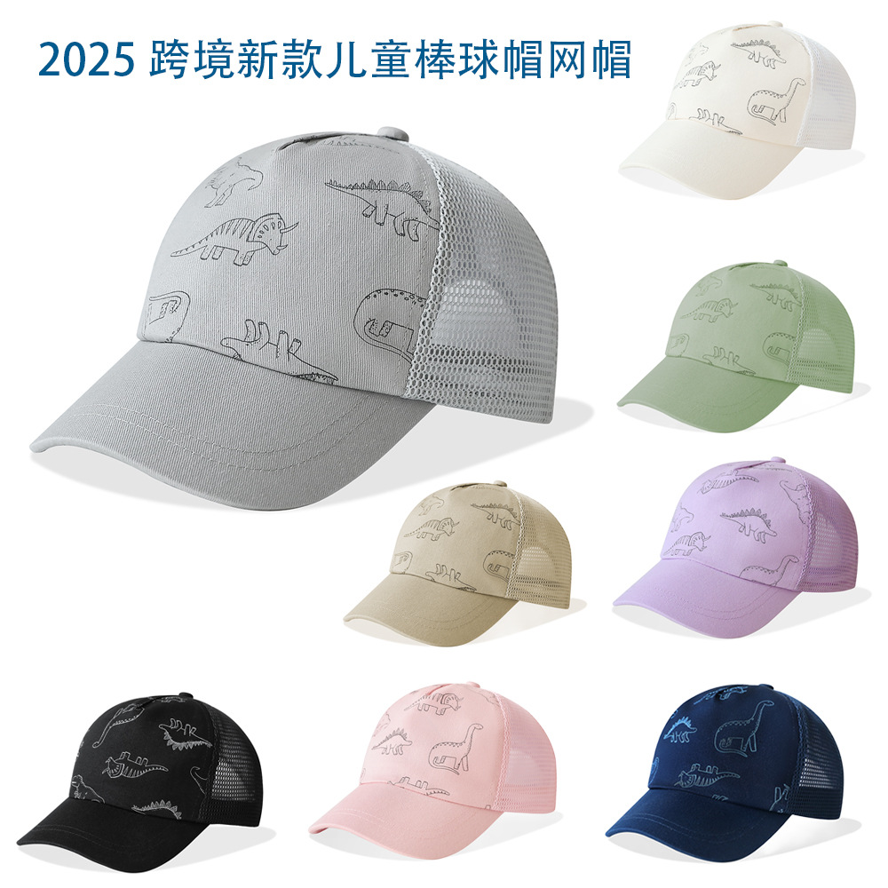 봄과 여름 새로운 국경 간 어린이 모자 만화 공룡 인쇄 아기 야구 모자 어린이 안티 UV 메쉬 모자스토어 가기