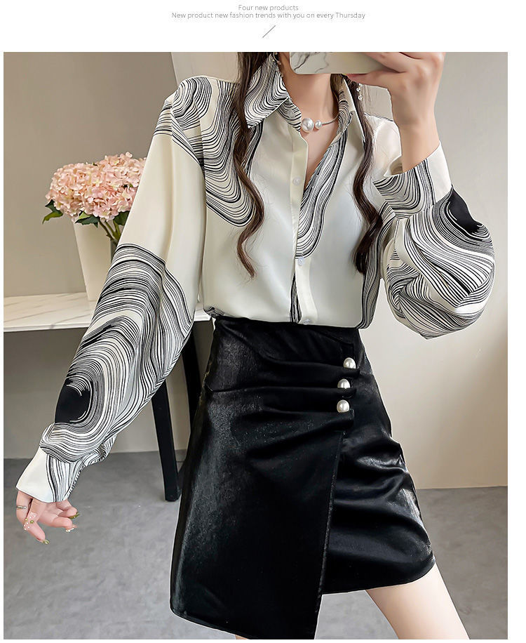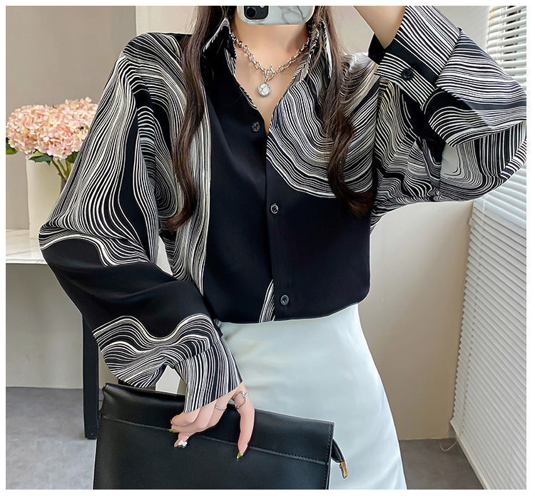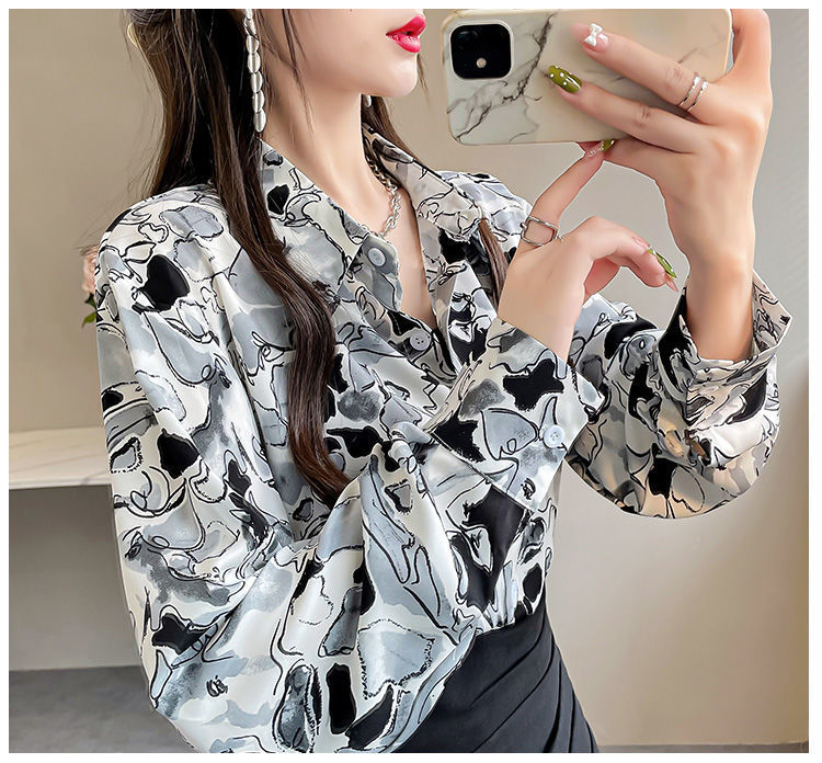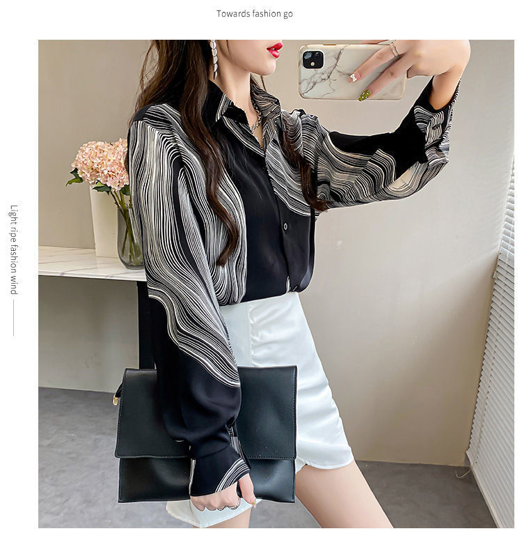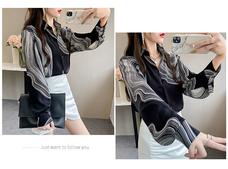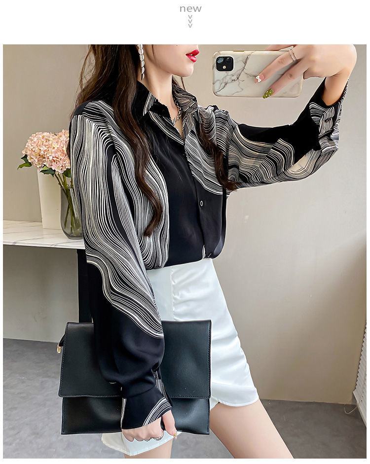 쉬폰 잉크 인쇄 느슨한 단일 가슴 셔츠 여성 올 매치 레트로 스타일 슬리밍 프랑스 틈새 디자인 센스 탑스토어 가기