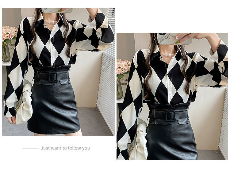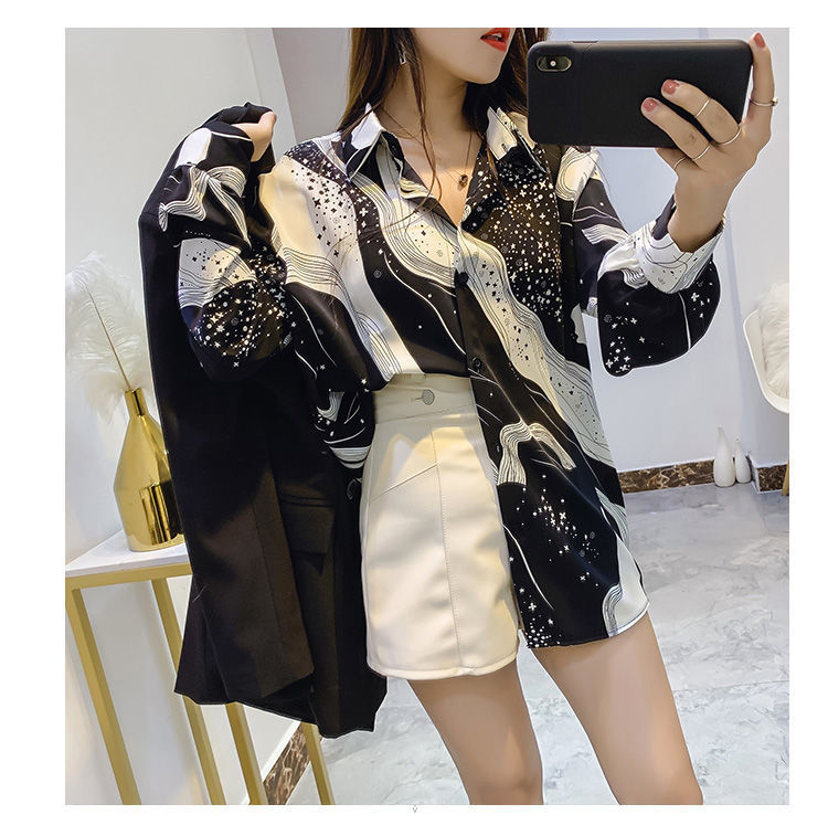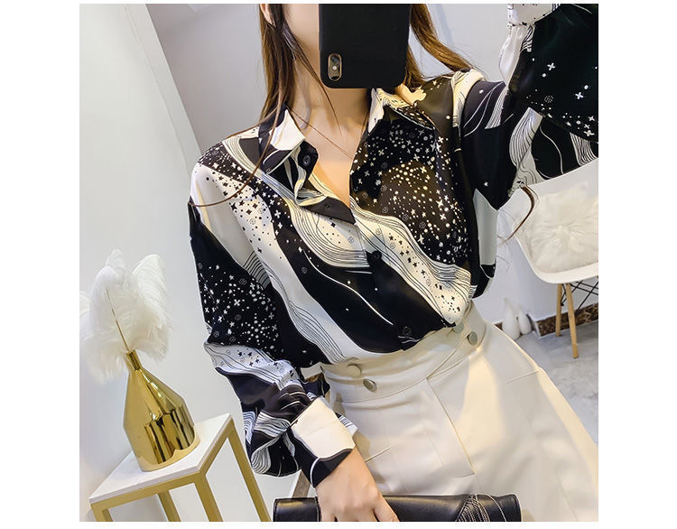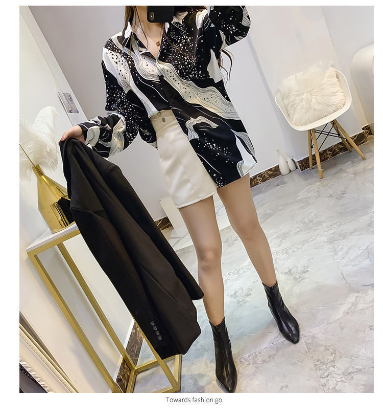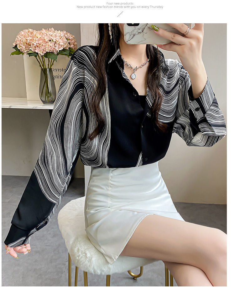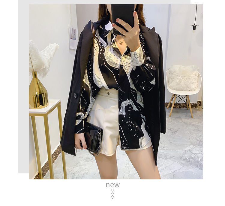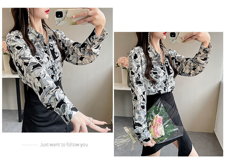 쉬폰 잉크 인쇄 느슨한 단일 가슴 셔츠 여성 올 매치 레트로 스타일 슬리밍 프랑스 틈새 디자인 센스 탑스토어 가기
