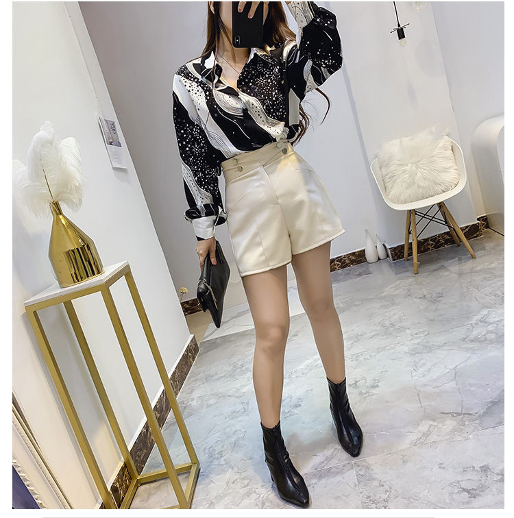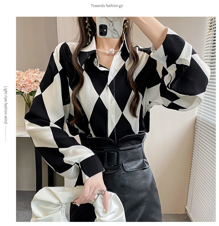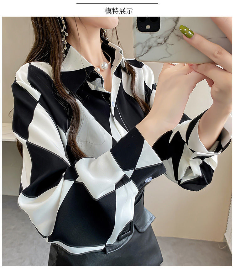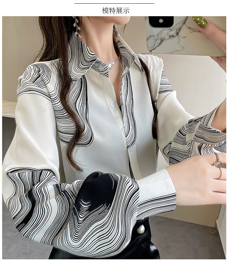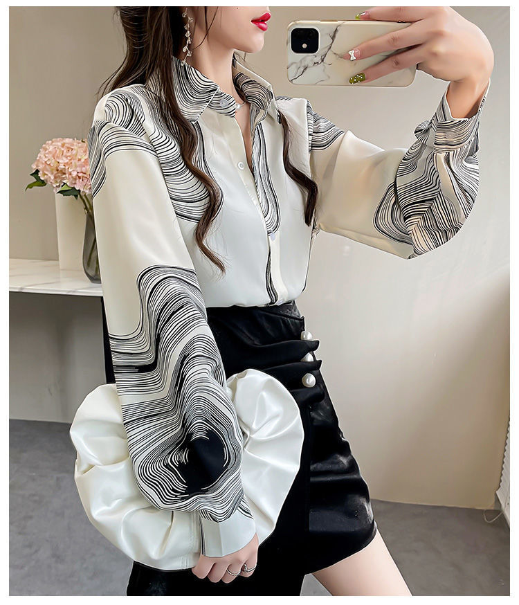 쉬폰 잉크 인쇄 느슨한 단일 가슴 셔츠 여성 올 매치 레트로 스타일 슬리밍 프랑스 틈새 디자인 센스 탑