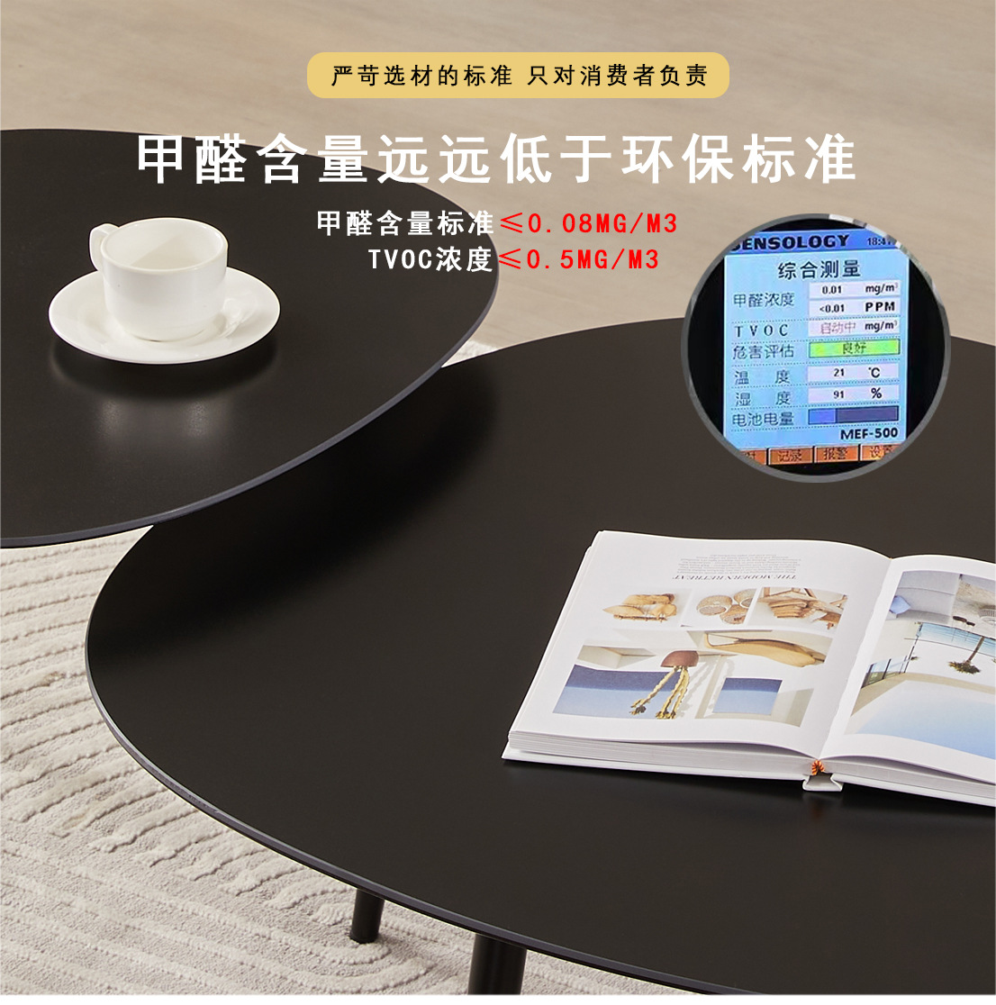 이탈리아 미니멀리스트 소형 아파트 커피 테이블 조합 심플 모던 발코니 타원형 작은 원형 테이블 검정색 특별한 모양의 거실 북쪽 s^