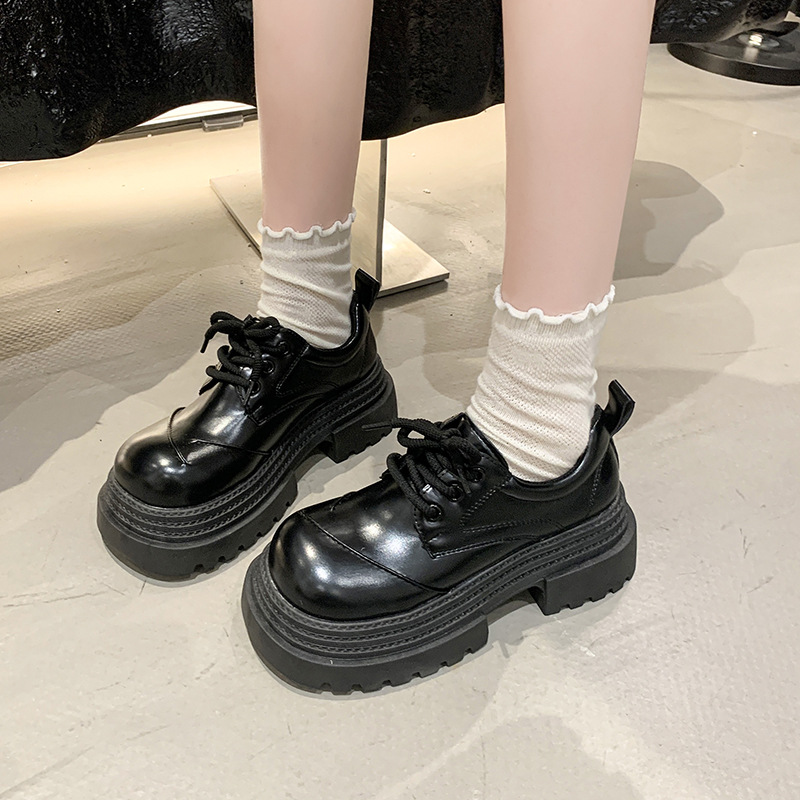 여성을위한 작은 높이 증가 복고풍 로퍼 2025 이른 봄 새로운 영국 스타일 다목적 레이스 업 두꺼운 밑창 라운드 발가락 신발스토어 가기