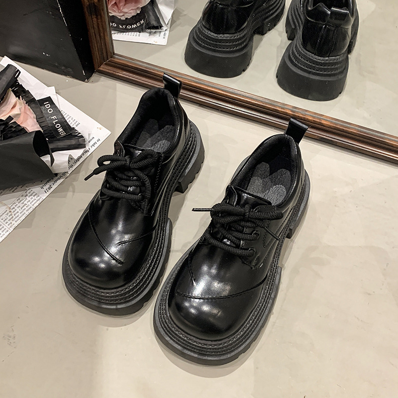 여성을위한 작은 높이 증가 복고풍 로퍼 2025 이른 봄 새로운 영국 스타일 다목적 레이스 업 두꺼운 밑창 라운드 발가락 신발
