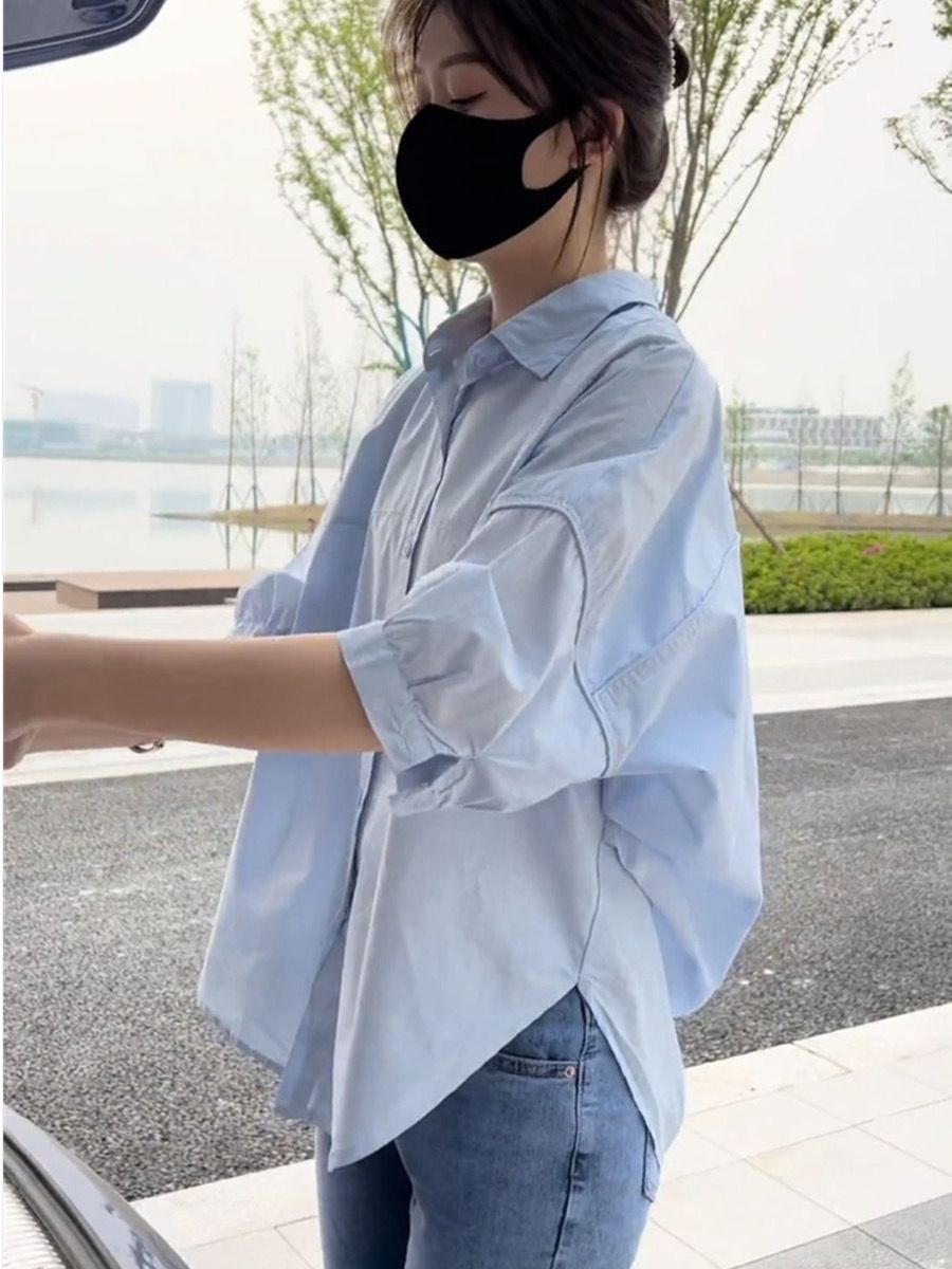 반 소매 셔츠 여성의 2025 여름 새로운 얇은 세련된 틈새 디자인 센스 루즈 캐주얼 탑 크로스 국경 도매스토어 가기