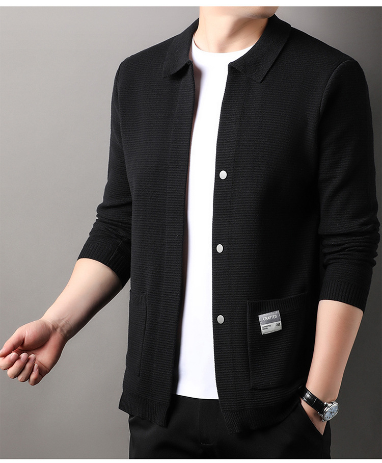 라이브 방송 같은 스타일 봄, 가을 남성 스웨터 카디건 패션 고급 코트 캐주얼 라펠 스웨터 포켓 탑