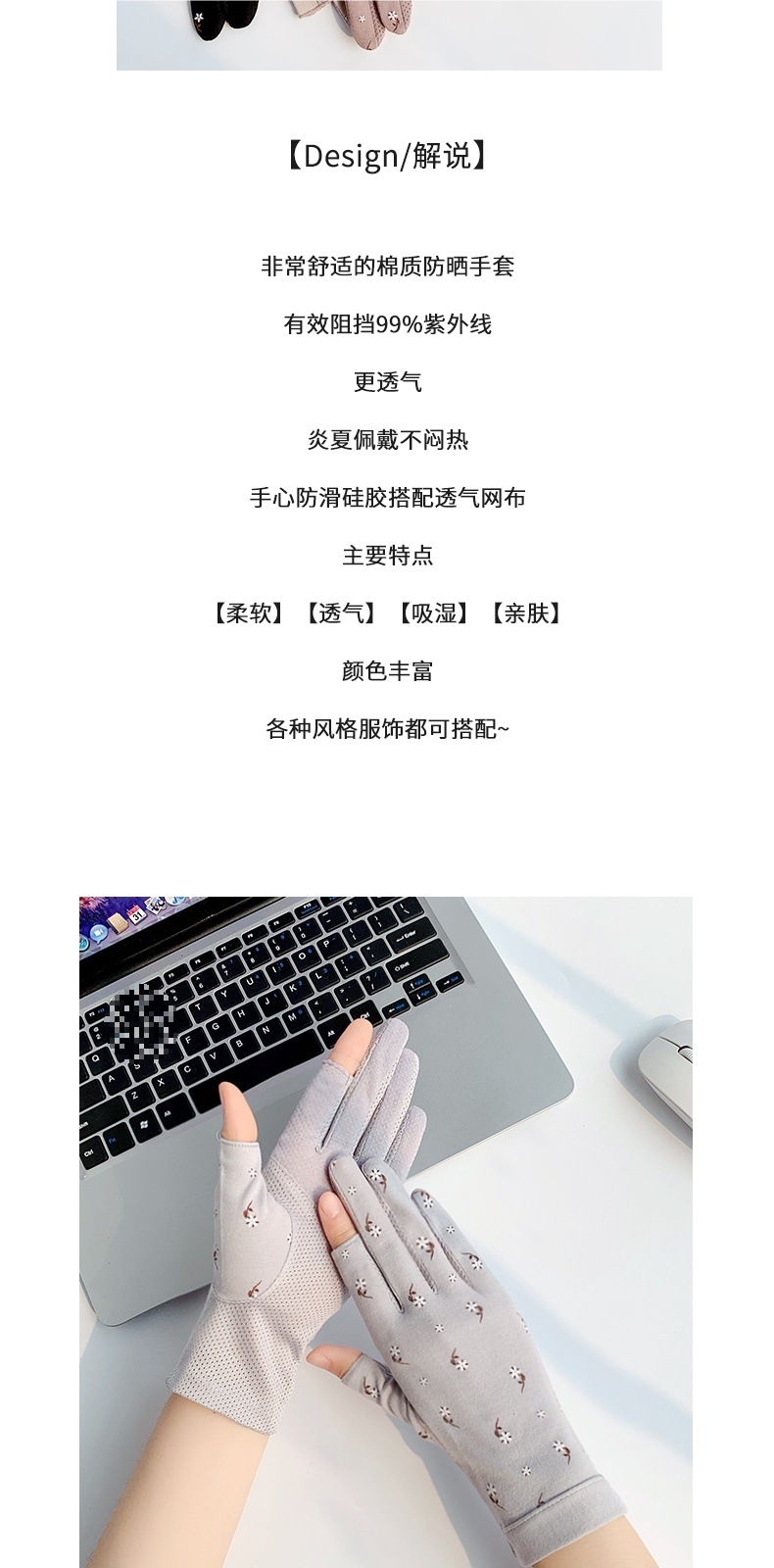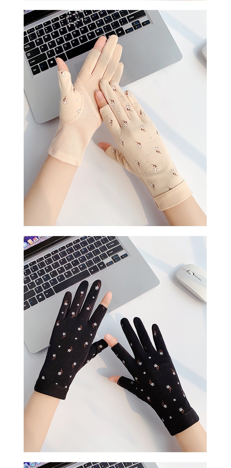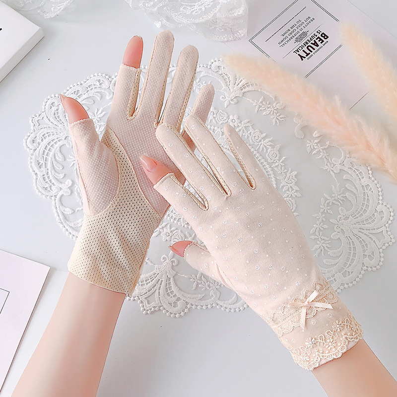 여성용 핑거리스 자외선 차단 장갑, 얇은 여름 자외선 차단, 운전자 전용 미끄럼 방지 사이클링, 통기성 면, 차 따기 봄