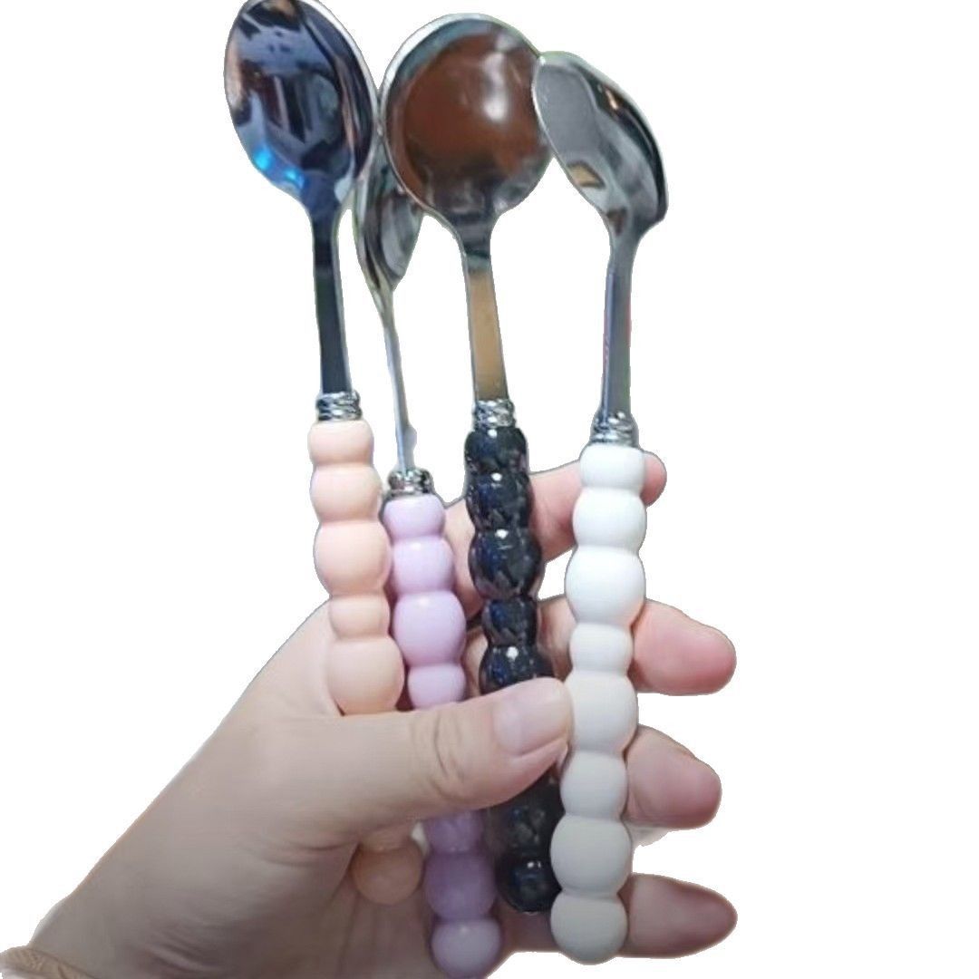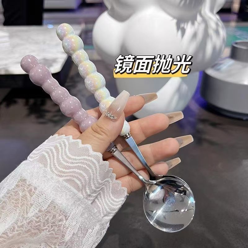 4 색 진주 스테인레스 스틸 스푼 진주 손잡이 가정용 서양 디저트 스푼 고가 소녀의 심장 라운드 스푼스토어 가기